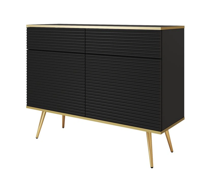 Juoda Oro KSZ107 komoda – su dviem spintelėmis ir dviem stalčiais.