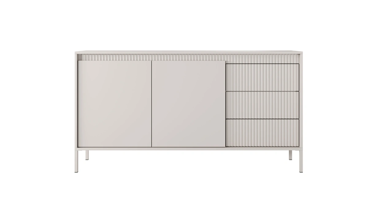 Komoda su spintelėmis ir stalčiais, grioveliais išraižyti fasadai 153 2D3S Senso smėlio spalvos