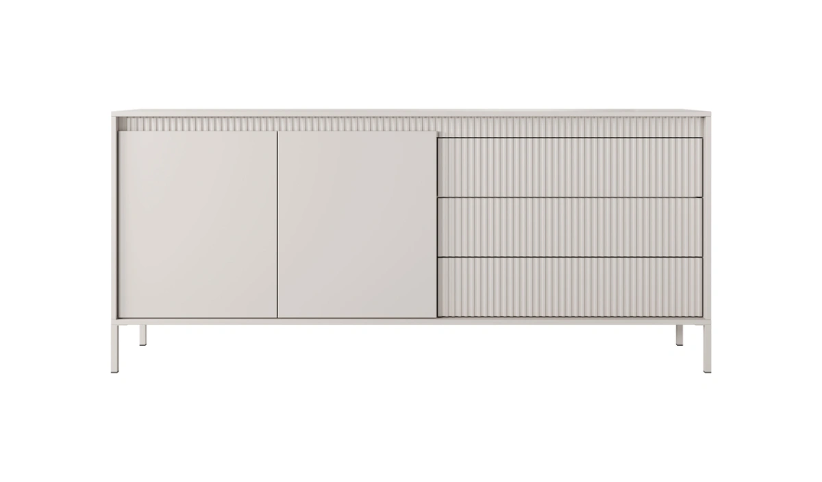 Komoda su spintelėmis ir stalčiais, grioveliais išraižyti fasadai 187 2D3S Senso smėlio spalvos