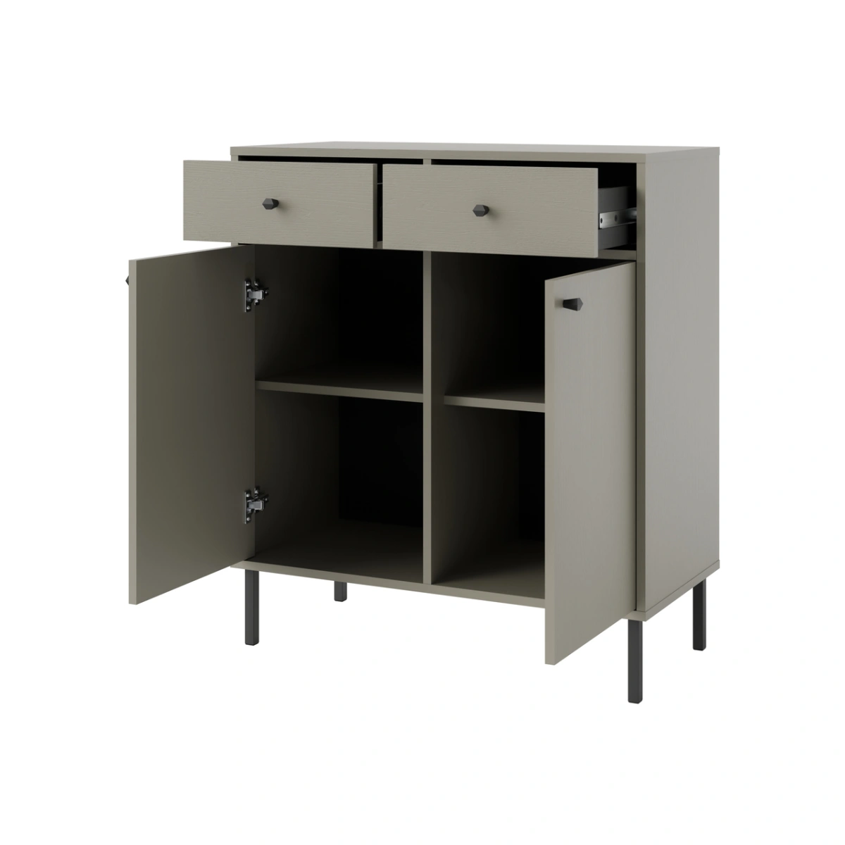„Tokyo 2F2S Eucaliptus“ komoda – su dviem spintelėmis ir dviem stalčiais.