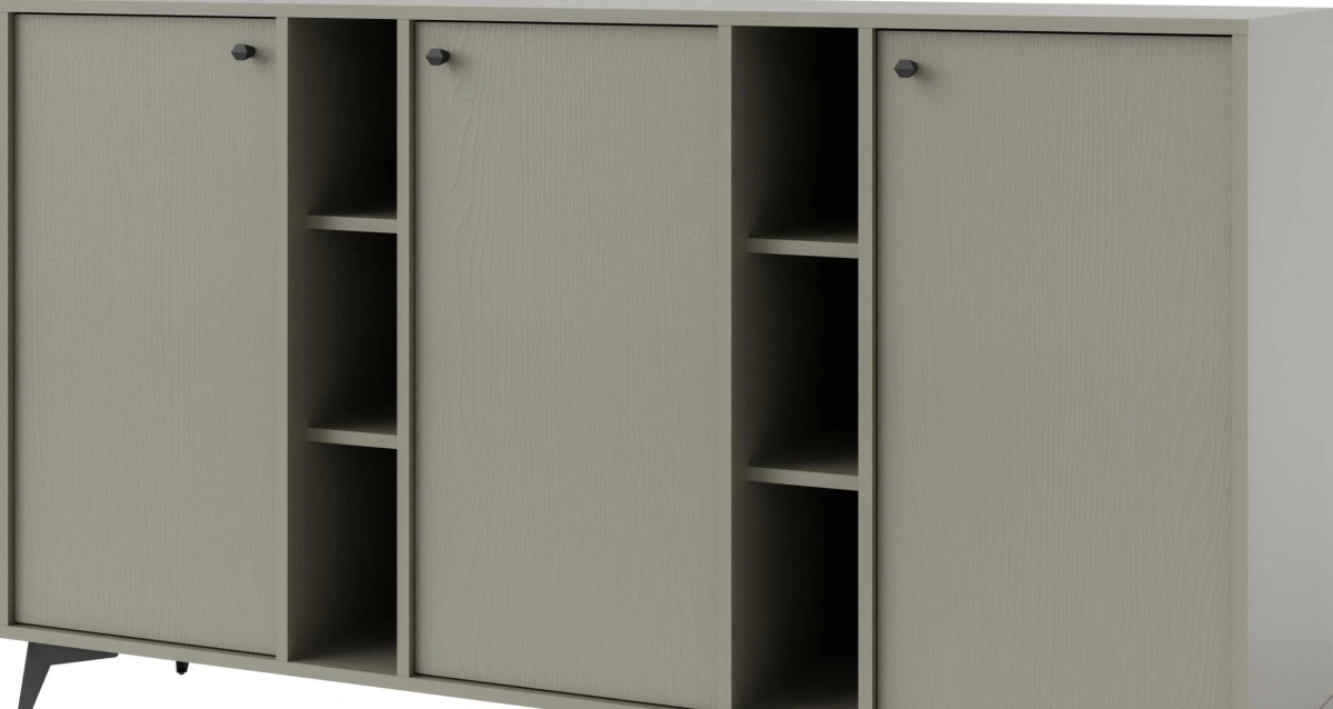 „Tokyo 3F Eucaliptus“ komoda – turi tris spinteles, atskirtas nišomis.