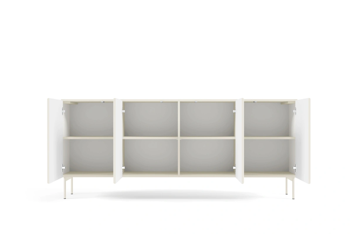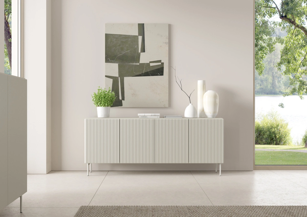 Komoda „Multi“ turi keturias spinteles su lentynomis už jų.
