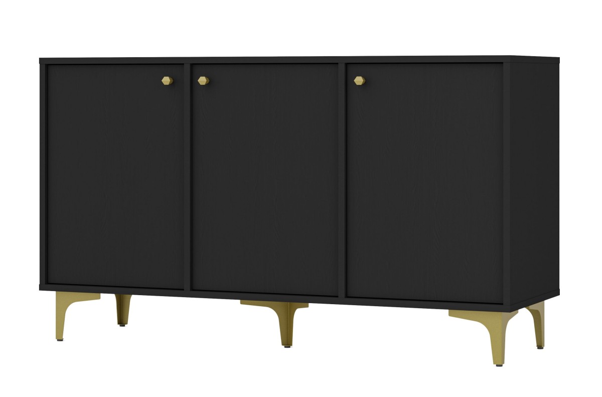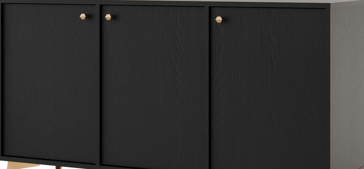 Juoda komoda „Tokyo 3F“ – su trimis spintelėmis.