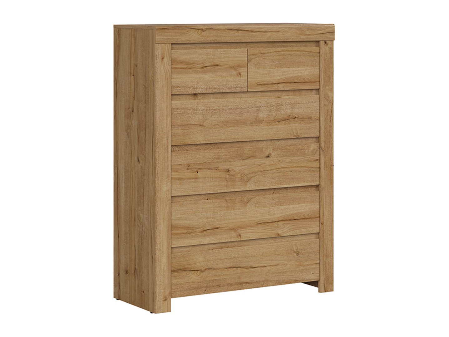 „Holten“ komoda – unikali erdvė daiktams laikyti ir dekoruoti. Jei ieškote baldų, kurie padėtų sutvarkyti miegamąjį ir kartu būtų estetiškai patrauklus dekoratyvinis elementas, „Holten“ komoda yra puikus sprendimas. Ši moderni linija derina funkcionalumą ir gamtos įkvėpimą, sukurdama praktišką ir gražų baldą. Štai kodėl turėtumėte apsvarstyti „Holten“ komodą: „Holten“ komodoje yra šeši praktiški stalčiai, leidžiantys efektyviai susitvarkyti drabužius, apatinius, papuošalus ar kitus smulkius daiktus. Tai leidžia palaikyti tvarką miegamajame ir turėti visus būtiniausius daiktus po ranka. Platus stalviršis – puiki vieta suasmeninimui. Ant jo galite laikyti šeimos nuotraukas, gėlių vazoną, vazą ar niekučių dėžutę. Tai puikus būdas suteikti miegamajam asmeniškumo. „Waterford Oak“ apdaila su išskirtine medienos tekstūra suteikia komodai natūralią ir šiltą išvaizdą. Raštų įvairovė kiekvieną komodą daro unikalią ir pabrėžia jos charakterį. Komodos fasadai be rankenėlių atrodo elegantiškai ir moderniai. Lygus paviršius ir minimalistinis dizainas sukuria darnią visumą. Švelnaus uždarymo bėgeliai: Erdvūs stalčiai tvirtinami ant švelnaus uždarymo bėgelių, todėl juos atidaryti ir uždaryti beveik negirdima, o tai ypač patogu miegamajame. „Holten“ komoda puikiai dera su kitais „Holten“ kolekcijos elementais, leisdama sukurti darnų ir įspūdingą miegamojo išplanavimą. Interjerą galite pritaikyti pagal savo poreikius ir skonį, sukurdami elegantišką ir funkcionalią erdvę. „Holten“ komoda yra ne tik daiktų laikymo vieta, bet ir dekoratyvinis elementas jūsų miegamajame. Dėl savo funkcionalumo ir estetikos galite sukurti erdvę, kuri ne tik džiugins svečius, bet ir supaprastins jūsų kasdienį gyvenimą.