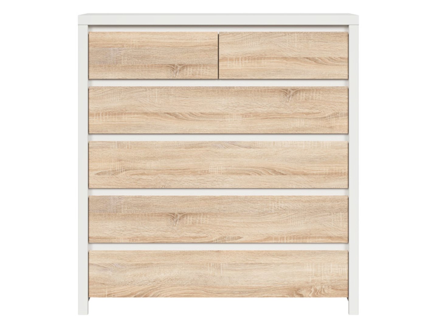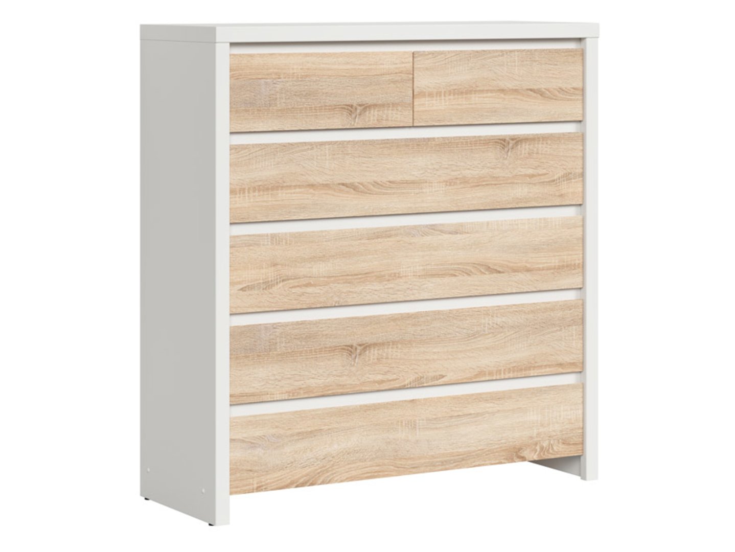 Komoda su šešiais stalčiais KASPIAN 104.5 cm balta/sonoma ąžuolas