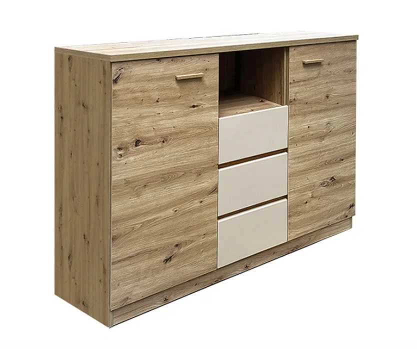 Komoda „Canada CX2“ turi dvi spinteles, lentyną už fasadų, papildomą nišą ir tris stalčius.