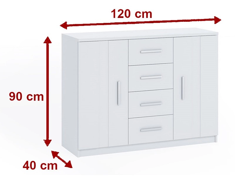 120 cm pločio balta komoda „Rico“ puikiai tiks bet kuriame miegamajame, svetainėje ar poilsio kambaryje.