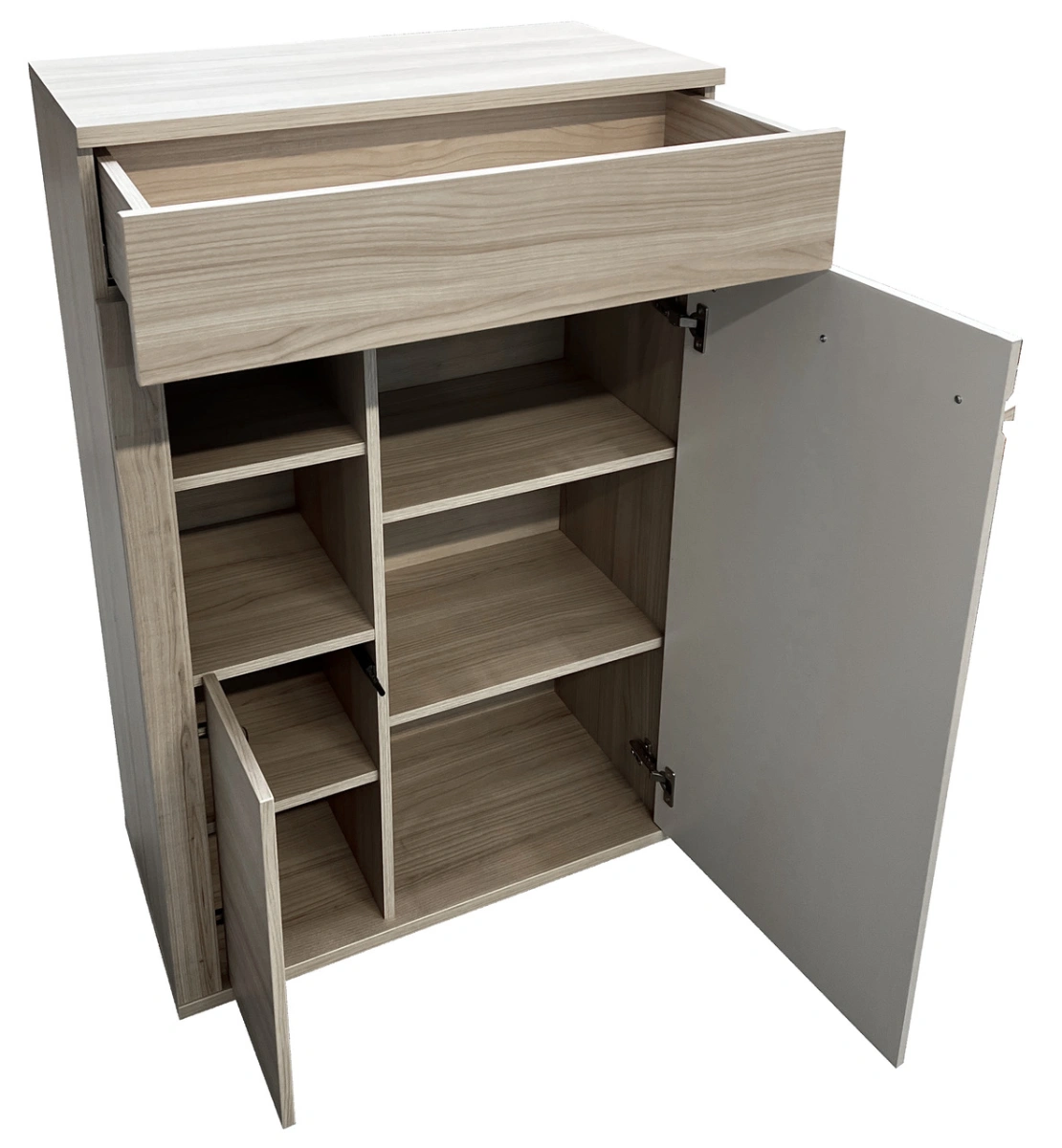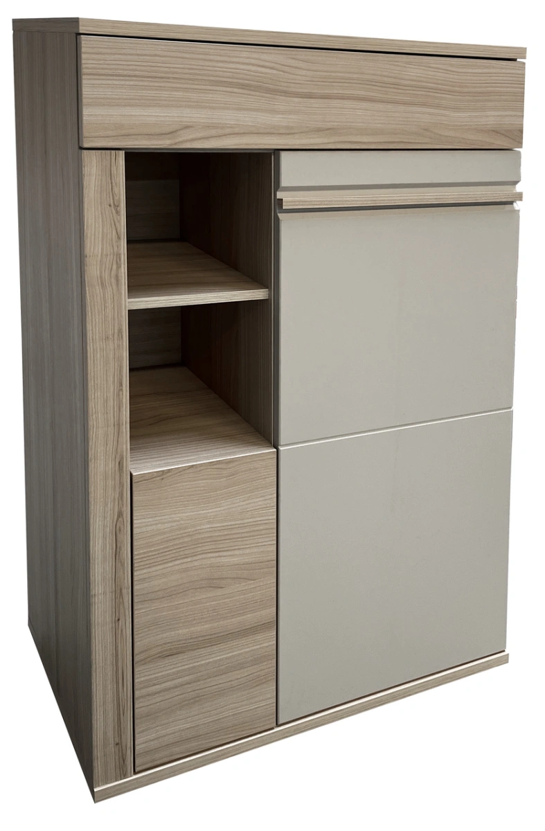 Komoda „Oslo OS15“ – turi dvi spinteles, stalčių ir dvi nišas. Tikros nuotraukos iš antrojo mėnesio galerijoje.