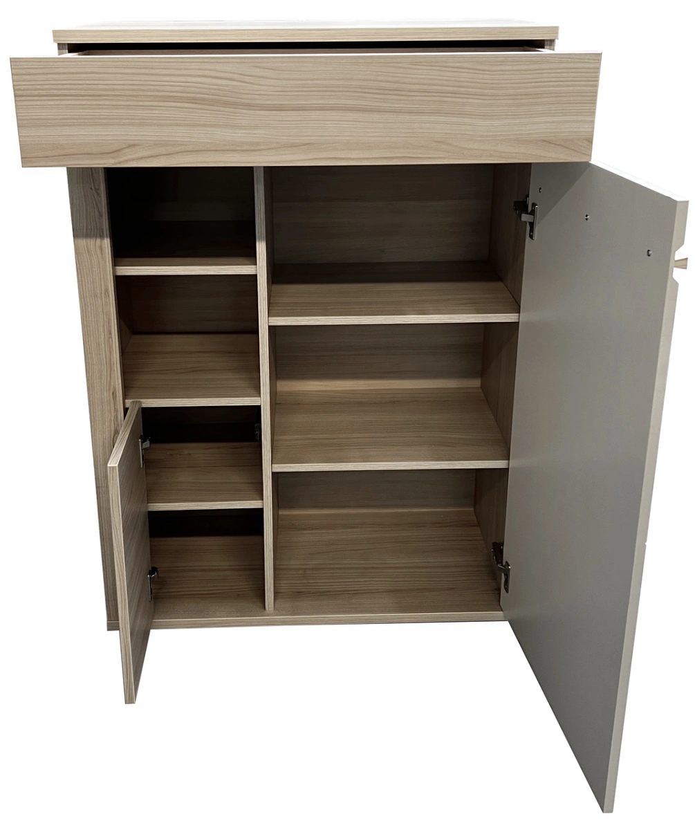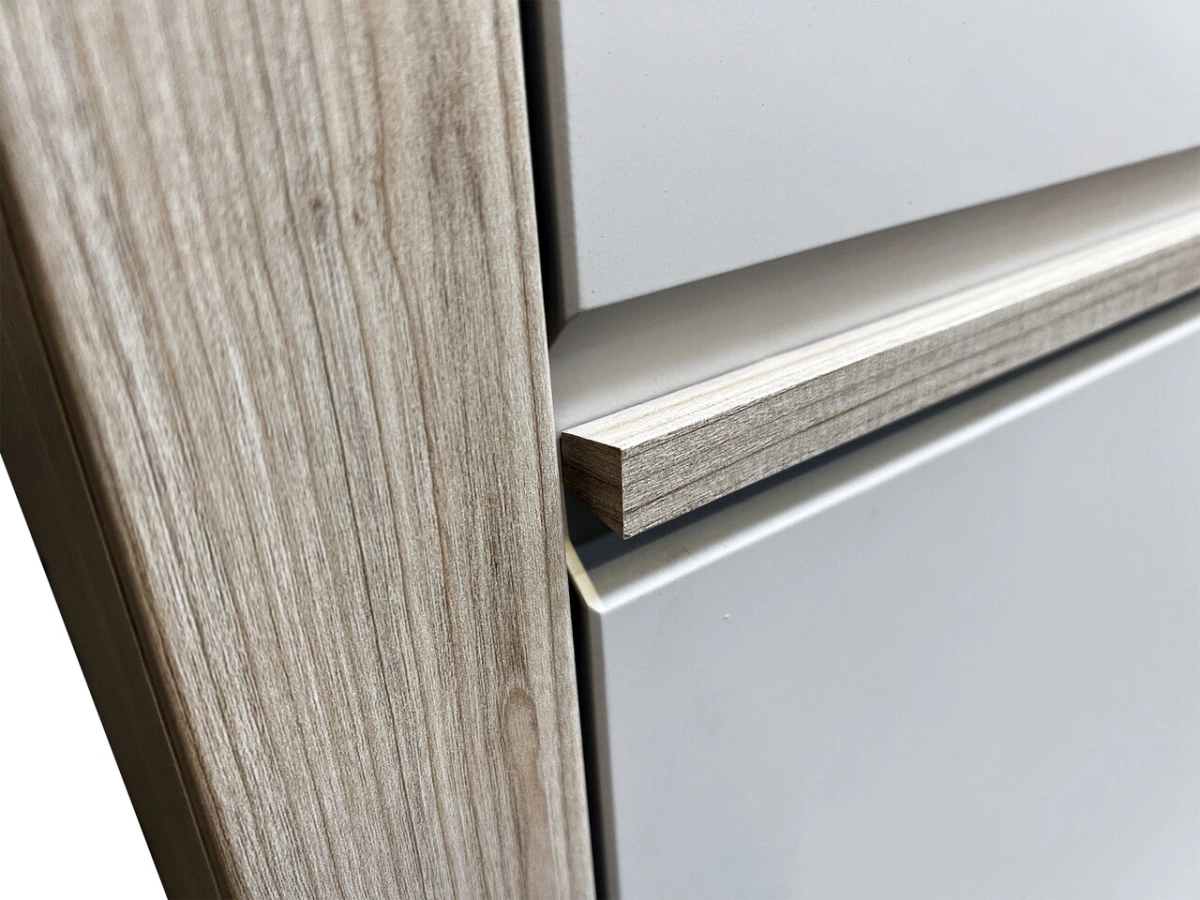 Priekinė dalis: MDF plokštė, laminuota kašmyro spalvos PVC