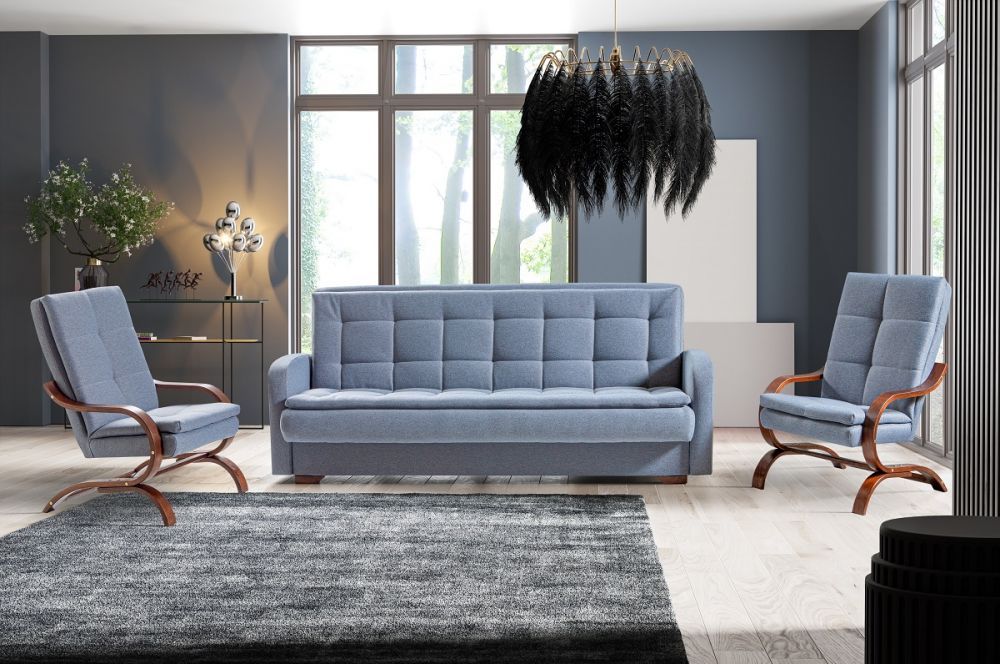 Svetainės komplektą sudaro sofa-lova ir du „Finka“ foteliai.