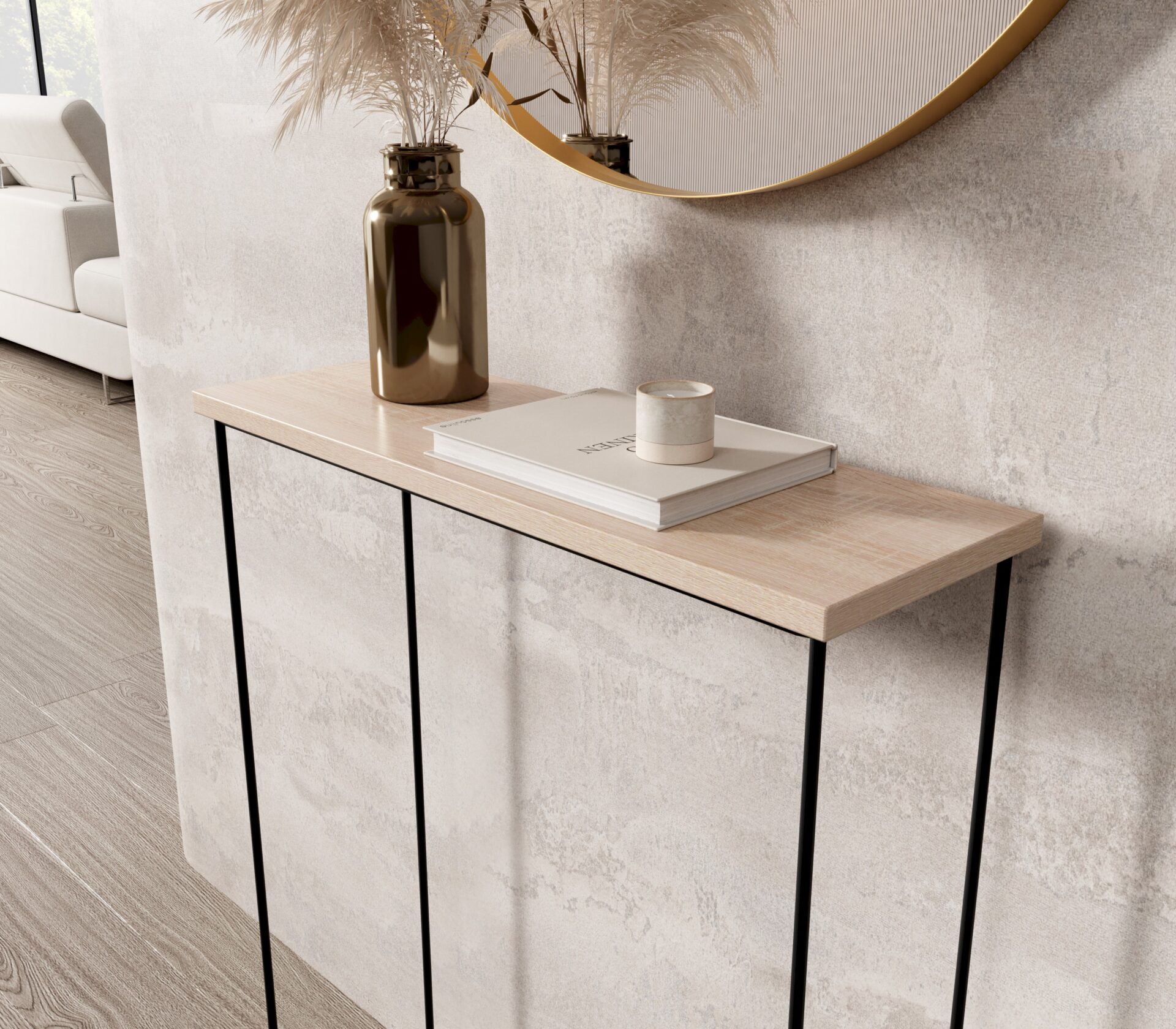 „Sili“ konsolinis staliukas su vieline koja puikiai papildys bet kokį interjerą. Dėl universalaus dizaino jis tinka tiek moderniam, tiek klasikiniam interjerui. Jis gali būti praktiška erdvė prieškambaryje, elegantiškas svetainės akcentas arba stilinga darbo vieta biure.