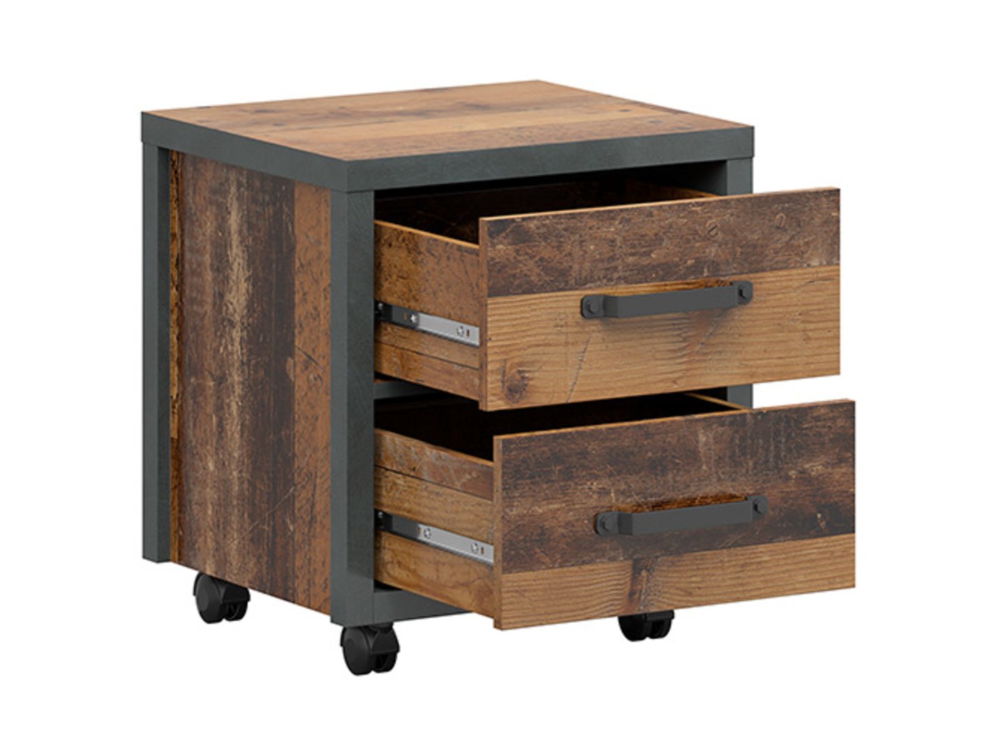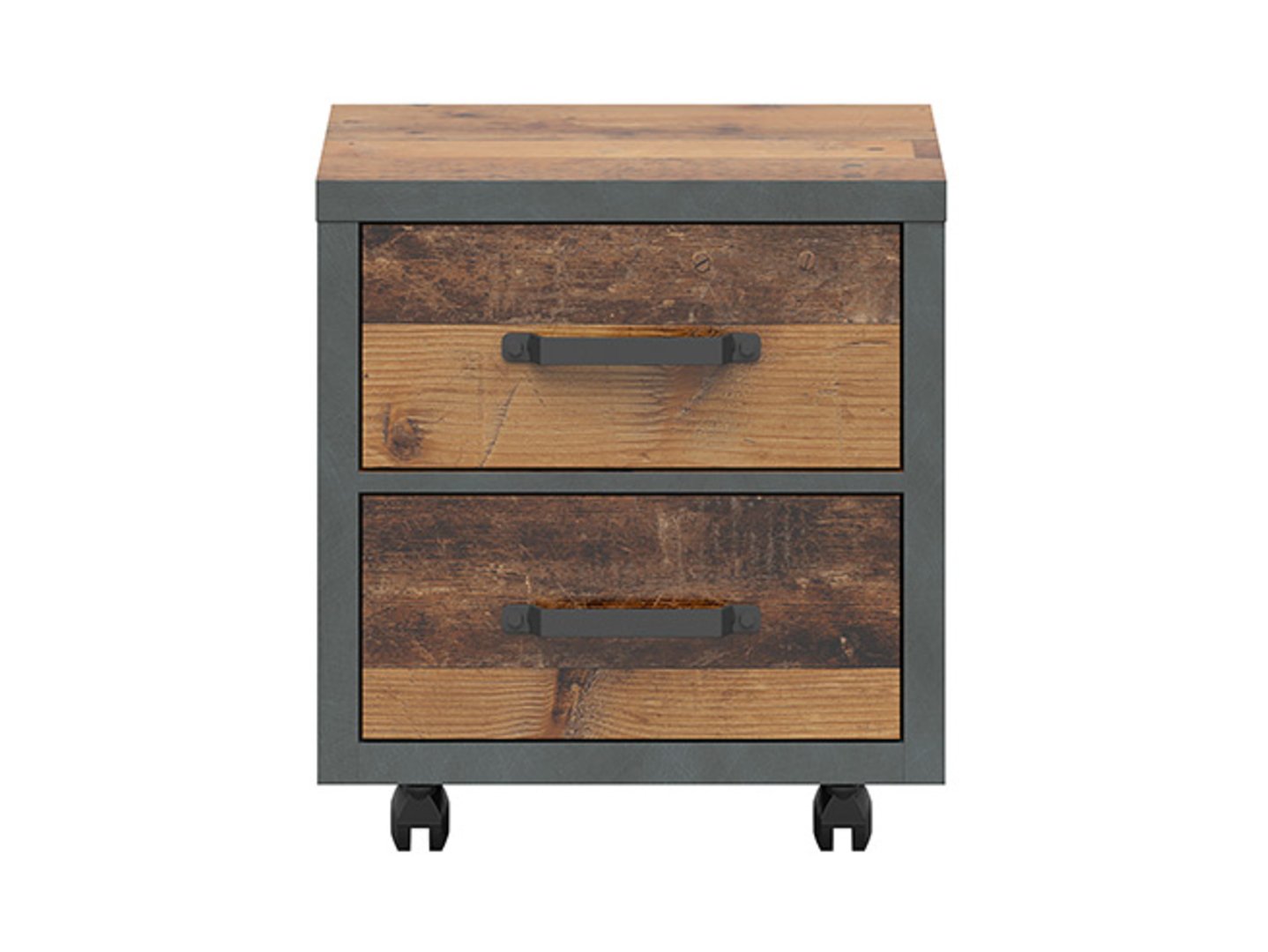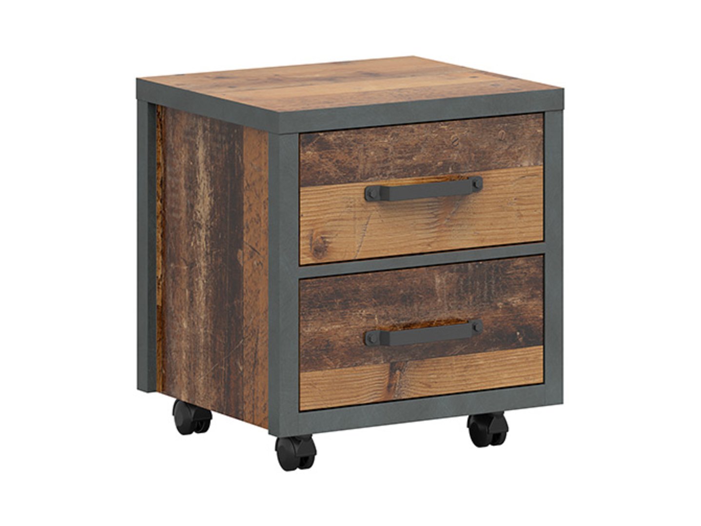 „Weston“ konteineris – tvarka ir stilius vos ranka pasiekiami. Pradėti dieną susiradus žadintuvą ar telefoną gali būti lengviau nei manote, kai šalia lovos turite praktišką „Weston“ konteinerį. Tai ne tik vieta smulkiems daiktams, bet ir elegantiškas kambario papildymas, derinantis funkcionalumą ir stilių. Su dviem stalčiais „Weston“ konteineris suteikia papildomos vietos vaistams, kosmetikai, papuošalams ir kitiems būtiniausiems daiktams laikyti. Idealiai tinka tiek kaip naktinis staliukas, tiek kaip stalo papildymas, leidžiantis laikyti mokyklines prekes, dailės reikmenis ar svarbius dokumentus. Konteinerio lofto stilių pabrėžia pastorinti šonai ir viršus, taip pat unikalios, tvirtos rankenos. Meniško ąžuolo fasadai perteikia natūralią neapdorotos medienos išvaizdą, harmoningai papildydami tamsų „Matera“ korpusą. Kompaktiški matmenys (46 x 40 x 50,5 cm) reiškia, kad konteineris neužima daug vietos, todėl idealiai tinka pastatyti šalia lovos, mažoje nišoje ar po stalu. „Weston“ spintelė yra ne tik praktiškas baldas, bet ir stilingas vaiko ar paauglio kambario papildymas. Galima rinktis iš dviejų spalvų (senovinio stiliaus pušies / „Matera“ ir meniško ąžuolo / „Matera“), todėl ją galima pritaikyti prie individualių pageidavimų ir interjero charakterio. Trumpai tariant, „Weston“ spintelė yra sprendimas, leidžiantis palaikyti tvarką neaukojant estetikos. Tai praktiškas akcentas, suteikiantis paauglio kambariui funkcionalumo ir modernaus dizaino.