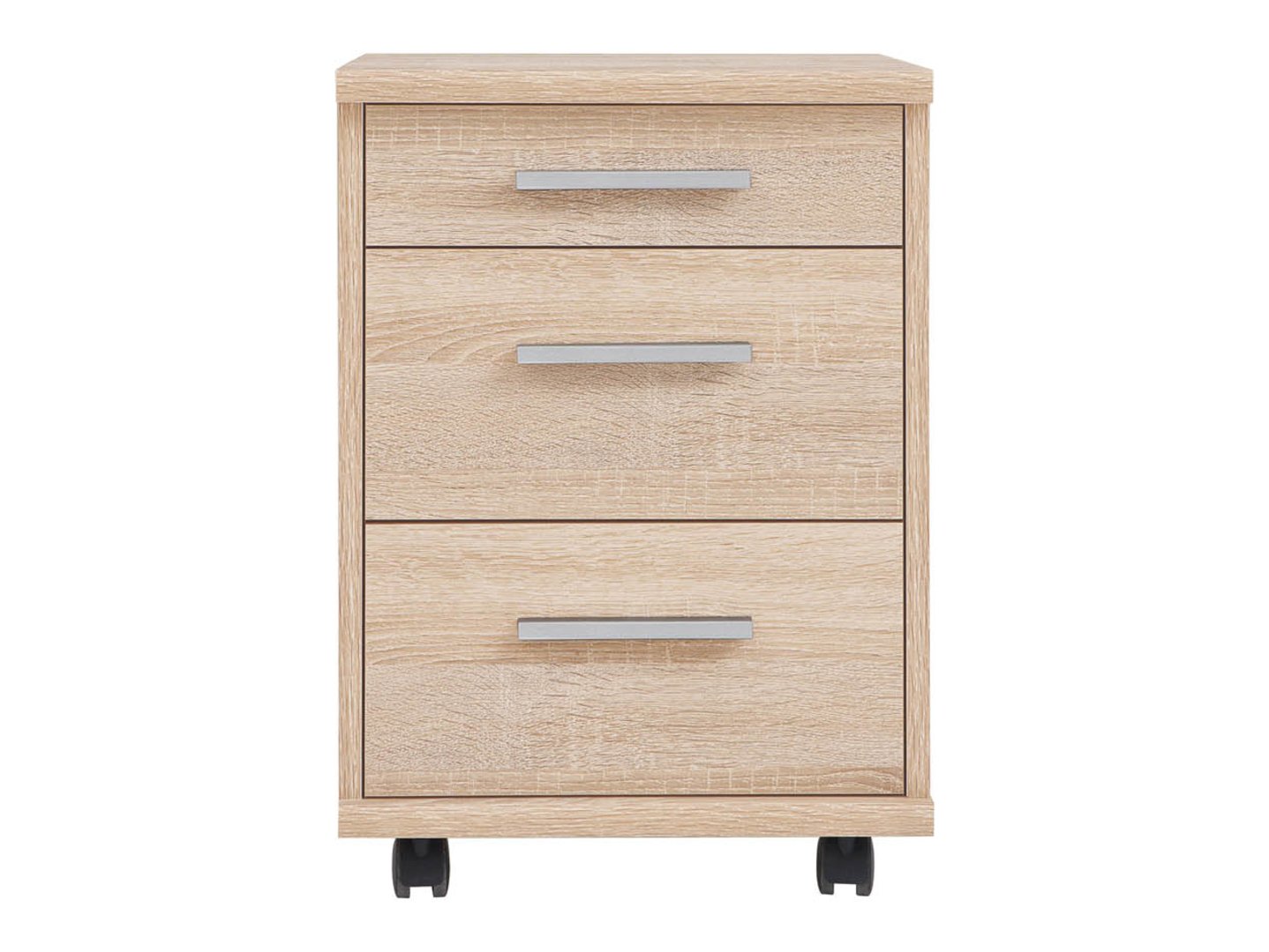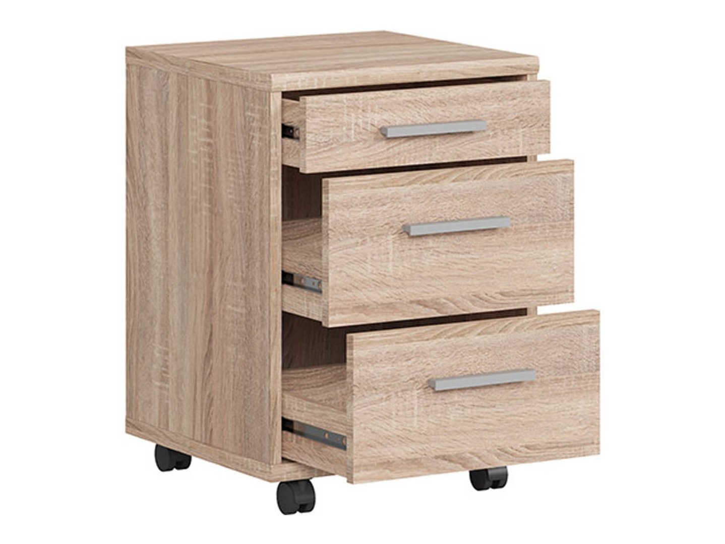BRW biuro pjedestalas su stalčiais – puikiai tinka po stalu. Šis BRW Office kolekcijos pjedestalas yra mobilus ir funkcionalus elementas, idealiai tinkantis praktiškam išdėstymui moderniame biure. Šios serijos baldai leidžia susikurti svajonių biuro erdvę. Pjedestalas turi tris praktiškus stalčius, kurie leidžia patogiai laikyti dokumentus ir palaikyti tvarką darbo vietoje. Dėl pasukamų ratukų pjedestalą lengva perkelti, todėl galite pritaikyti jo padėtį pagal savo poreikius. Dėl savo mobilumo jį galima lengvai pastatyti įvairiose biuro vietose, o tai padidina jo funkcionalumą. Sonoma ąžuolo apdaila pasižymi estetišku patrauklumu, o matoma medienos tekstūra suteikia jam charakterio. Paprastos rankenėlės ne tik palengvina stalčių naudojimą, bet ir papildo modernų baldų stilių. Kompaktiški pjedestalo matmenys leidžia jį paslėpti po stalu arba pastatyti mažame biure, todėl jis yra praktiškas bet kurio biuro papildymas. Jis taip pat dera su kitais BRW Office kolekcijos elementais, sukurdamas darnų ir funkcionalų biuro išdėstymą.