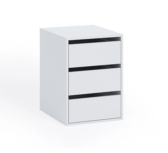 Baltas stalčių blokas „Rico“, puikiai tinkantis spintai su stumdomomis durimis arba drabužinei