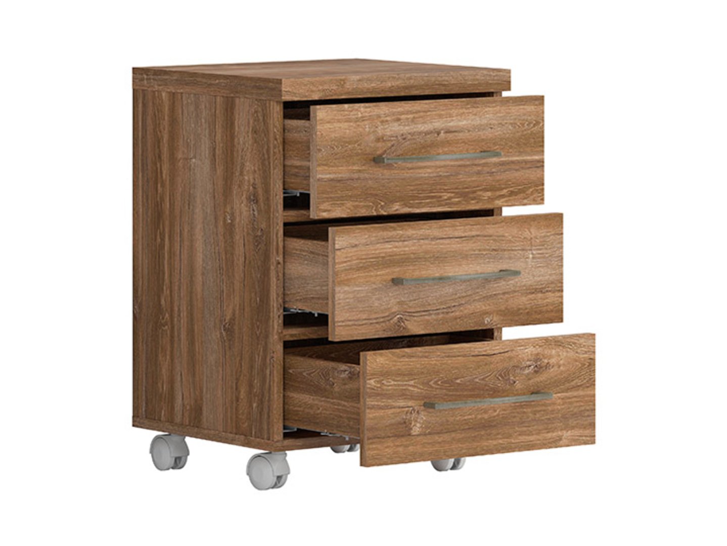 „Gent“ konteineris – jūsų mobilus organizatorius. „Gent“ kolekcija – tikras išsigelbėjimas elegancijos ir modernaus interjero mėgėjams. Šioje kolekcijoje taip pat yra „Gent“ konteineris, kuris gali būti vienas funkcionaliausių biuro įrangos elementų. Leiskite man parodyti visus šio mobiliojo organizatoriaus privalumus. „Gent“ konteineris yra neįtikėtinai funkcionalus, ypač biuro aplinkoje. Trys patogūs stalčiai yra puiki vieta laikyti dokumentus, biuro reikmenis ir kitus svarbius daiktus. Tai leidžia palaikyti tvarką ant stalo ir turėti visus būtiniausius daiktus po ranka. Tai ypač svarbu efektyviam ir organizuotam darbui. „Gent“ konteineris yra šiltos Stirlingo ąžuolo spalvos, su matomu medienos raštu ir lytima tikros medienos tekstūra. Ši apdaila suteikia baldams elegantiško ir klasikinio žavesio, todėl jie puikiai tinka įvairiems biuro ir interjero stiliams. Lengvai naudojami pasukami ratukai leidžia lengvai perkelti konteinerį, nerizikuojant įbrėžti grindų. Tai leidžia lengvai reguliuoti jo vietą biure, atsižvelgiant į jūsų poreikius ir erdvės organizavimą. Kompaktiški konteinerio matmenys leidžia jį pastatyti praktiškai bet kur arba net diskretiškai paslėpti po stalu. Šis sprendimas ypač naudingas mažuose biuruose, kur kiekvienas erdvės centimetras yra brangus. Firminės bėgelės su švelnaus uždarymo sistema užtikrina patogų „Gent“ konteinerio naudojimą. Stalčiai atsidaro ir užsidaro sklandžiai ir tyliai, o tai labai svarbu biuro aplinkoje. „Gent“ kolekcija siūlo platų elementų pasirinkimą, kuriuos galima laisvai derinti ir sukurti unikalius išdėstymus jūsų biure ar bute. Tai suteikia jums visišką laisvę kurti erdvę, atspindinčią jūsų asmeninį stilių ir poreikius. Trumpai tariant, „Gent“ konteineris yra mobilus organizatorius, kuris tikrai supaprastins jūsų kasdienį darbą biure. Jo funkcionalumas, stabilumas, elegantiškas dizainas ir lengvas mobilumas daro jį puikiu jūsų biuro erdvės papildymu. Derindami įvairius „Gent“ kolekcijos elementus, galite sukurti unikalius išdėstymus, kurie atitiks visus jūsų lūkesčius.