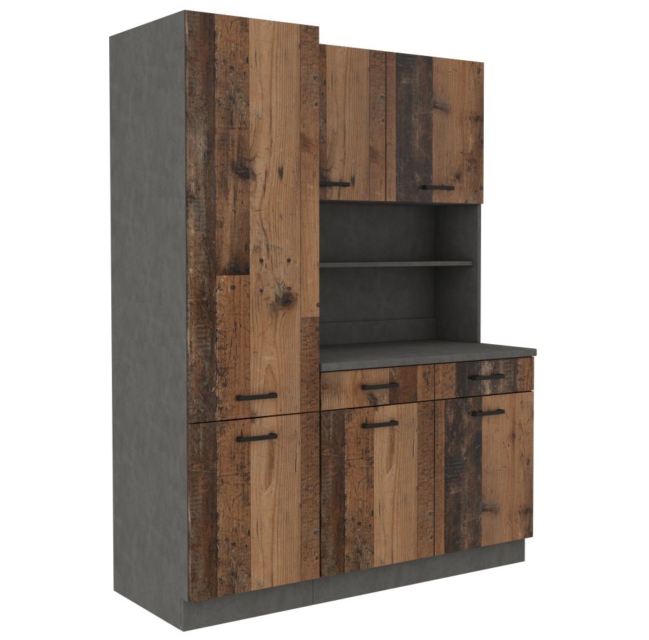 Maria indauja – turi dvi spinteles, du stalčius ir stalviršį su lentynomis. Pridedamas 28 mm ir 100 cm storio Matera stalviršis.