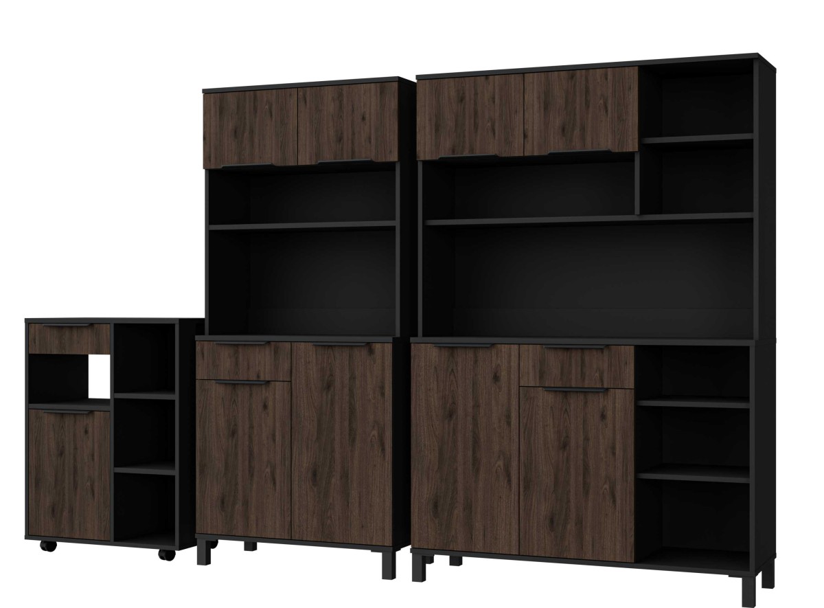 Monza bufeto tipo indauja – turi dvi spinteles, stalčių ir viršutinę spintelę su lentyna bei spintelėmis.