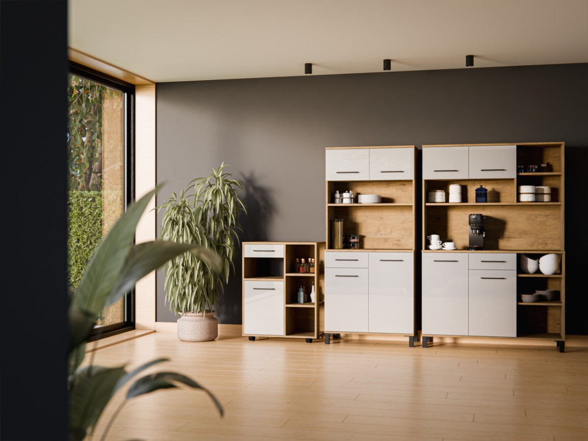Vigo virtuvės indauja bufetas, balta, blizgi, 80 cm