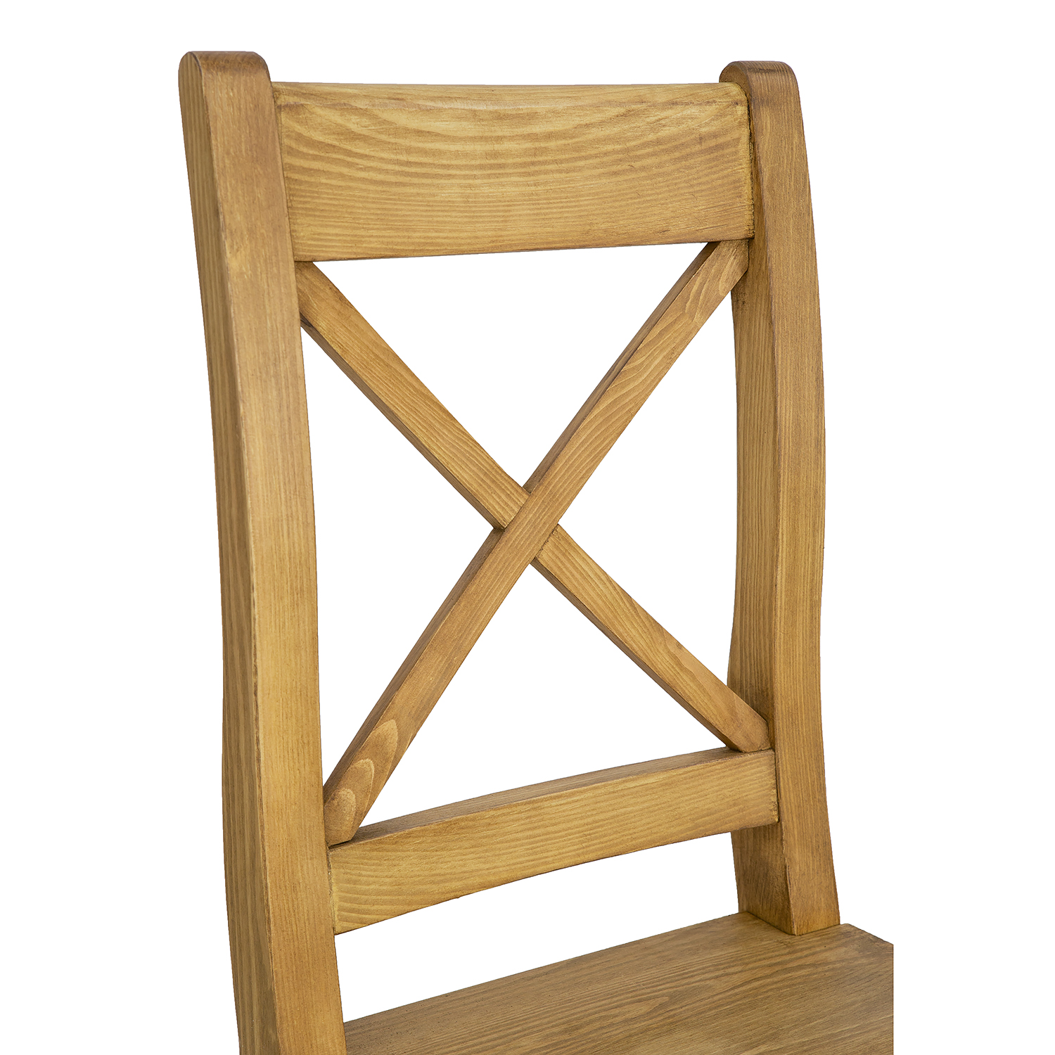 KT702 vaškuota kėdė, sukurta kaimišku stiliumi, pagaminta iš tvirtos pušies medienos. Ji pasižymi unikalia atlošo apdaila su išskirtiniu kryžiumi, kuris, be vizualinio patrauklumo, taip pat užtikrina komfortą. Ši kėdė yra esminis bet kurio stilingai įrengto interjero elementas. Ji puikiai papildo kaimišką svetainę, darbo kambarį ar valgomąjį, bet taip pat gerai dera ir klasikiniame interjere. Ši stilinga kėdė puikiai dera prie bet kokio stalo. Ji suteiks bet kuriam kambariui unikalią atmosferą, kupiną šilumos ir jaukios atmosferos.