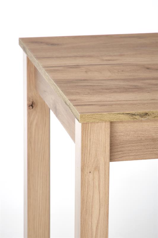 Matmenys: 120/68/76 cm, medžiaga: stalviršis – laminuotas baldų stalviršis, ABS plastikas kraštuose, kojelės – laminuotas MDF, spalva: dirbtinis ąžuolas
