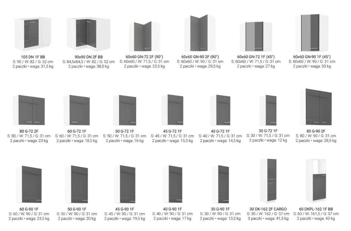 Blizgančioje virtuvėje „Lara“ yra modernus ir įdomus spintelių komplektas – virtuvės baldai, kurie tiks prie bet kokio interjero.