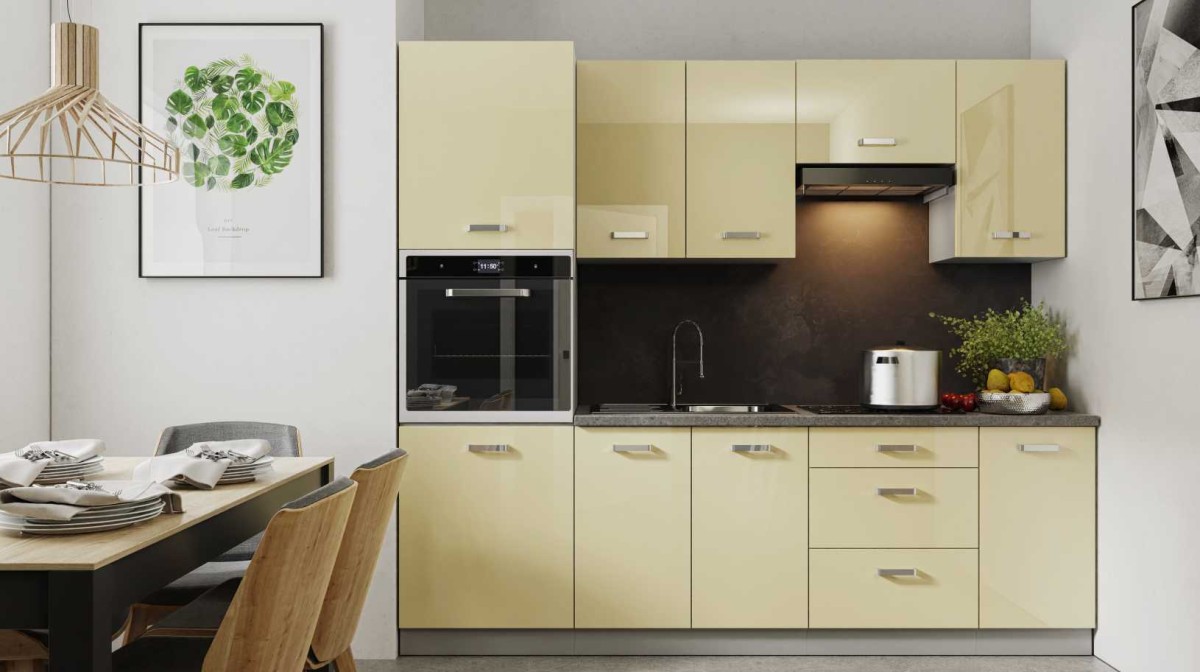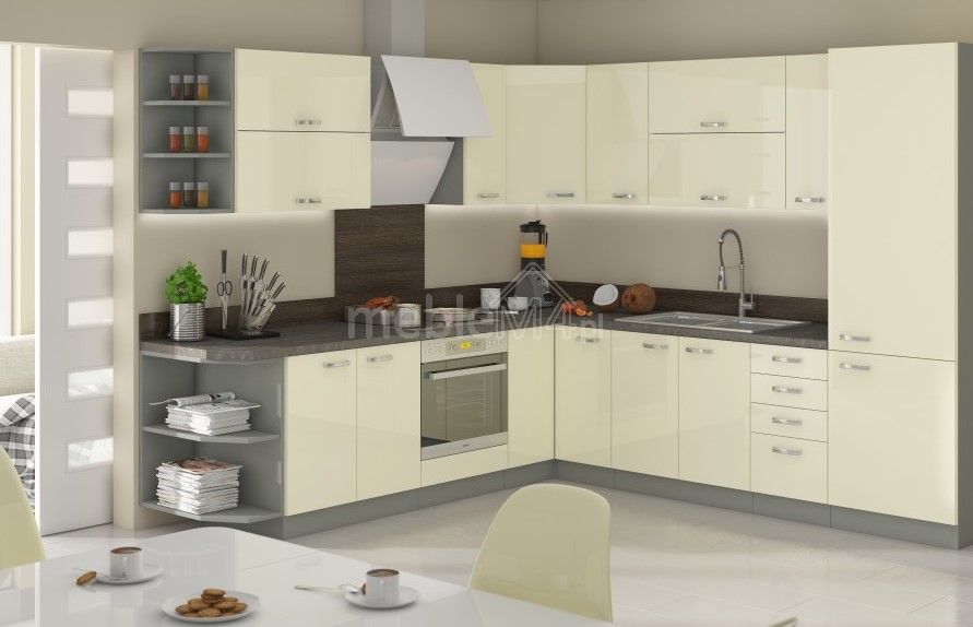 „Karmen 260 cm“ blizgi virtuvė – tai modernus virtuvės baldų komplektas, pasižymintis paprastomis formomis, lengvu dizainu ir blizgiais PVC fasadais. Komplektas puikiai tinka bet kuriai moderniu stiliumi dekoruotai virtuvei. Virtuvės ypatybės: