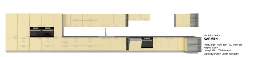 „Karmen 260 cm“ blizgi virtuvė – tai modernus virtuvės baldų komplektas, pasižymintis paprastomis formomis, lengvu dizainu ir blizgiais PVC fasadais. Komplektas puikiai tinka bet kuriai moderniu stiliumi dekoruotai virtuvei. Virtuvės ypatybės: