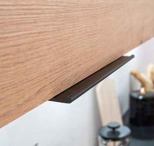 Virtuvės specifikacija – šviesaus medžio imitacijos fasadai | Virtuvės stilius – modernus | Matmenys: gylis [cm]>28,8; viršutinio paviršiaus gylis be stalviršio [cm]>44,6; gylis su stalviršiu [cm]>60; plotis [cm]>180–240; aukštis [cm]>72; viršutinio paviršiaus aukštis be stalviršio [cm]>82