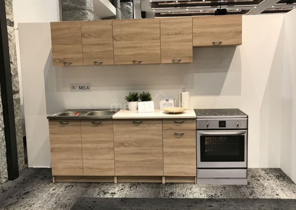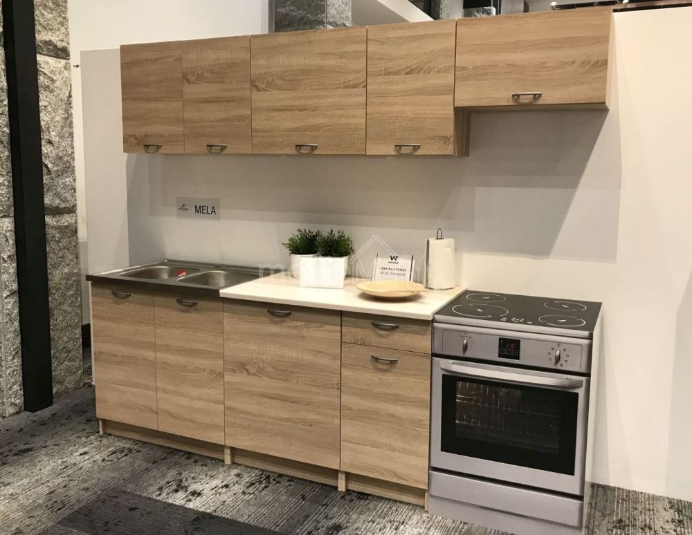 „Mela 180/240 cm Sonoma Oak“ virtuvės komplektas – tai ergonomiškas, iš 7 praktiškų spintelių sudarytas komplektas, skirtas modernioms virtuvėms ir virtuvėlėms.