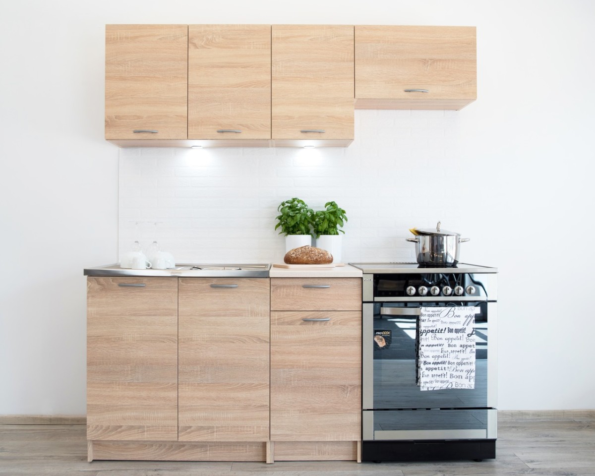 „Mela 180 cm Sonoma Oak“ virtuvė – tai ergonomiškas komplektas, susidedantis iš 6 praktiškų spintelių, skirtas mažoms virtuvėms, mini virtuvėlėms ar studijos tipo apartamentams.