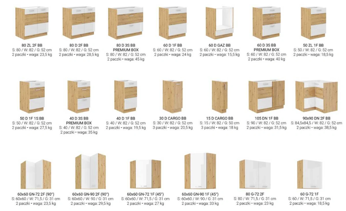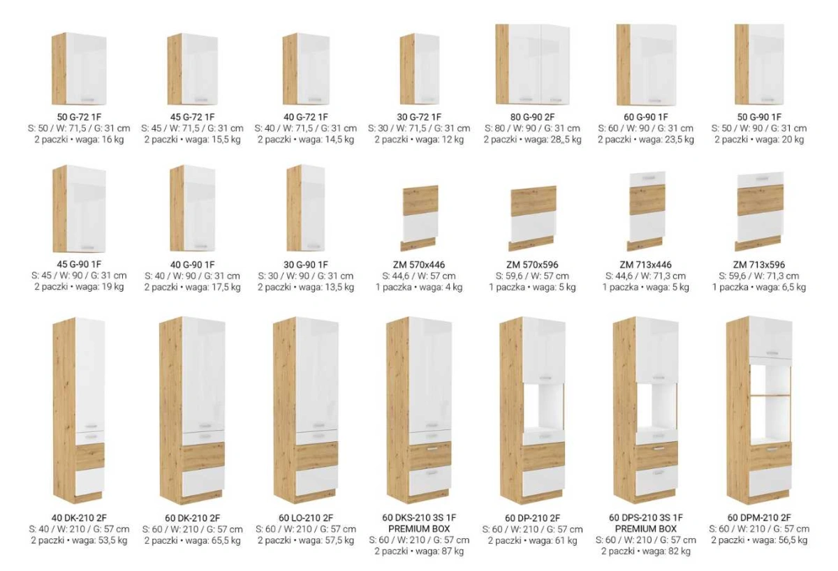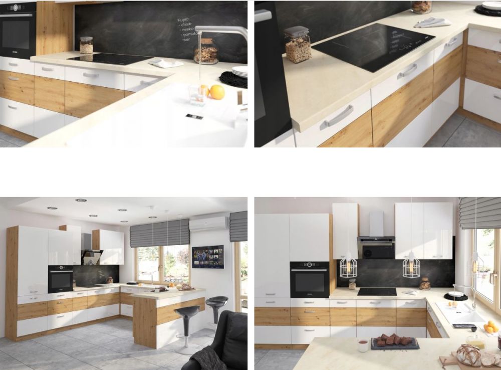 Fasadai: MDF balta, PVC balta, Artisan ąžuolas