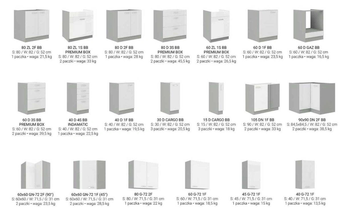 Plotis iš kairės [cm]: 40 | 60 | 30 | 60/60 | 30 | 80