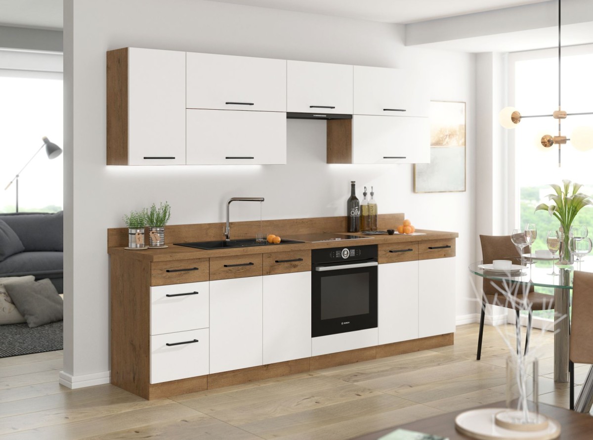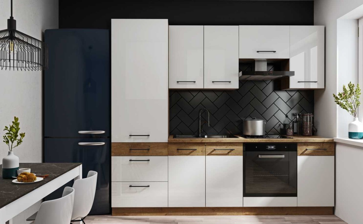 Vigo virtuvė 220 + 120 cm, balta, blizgi