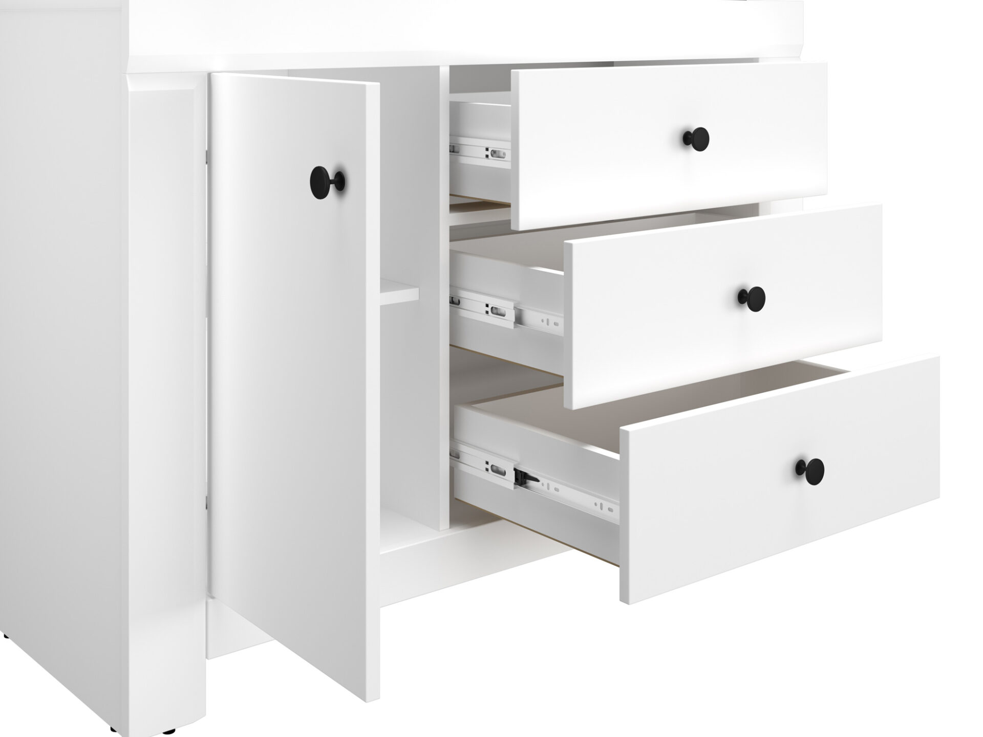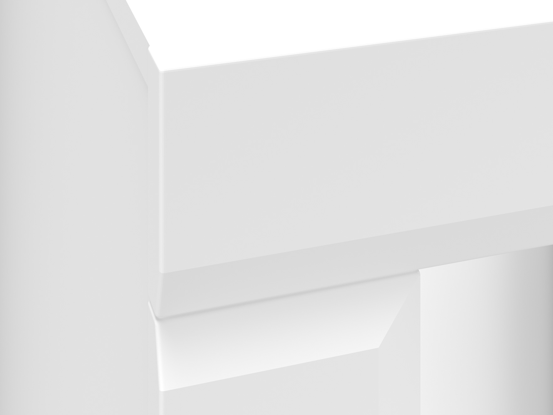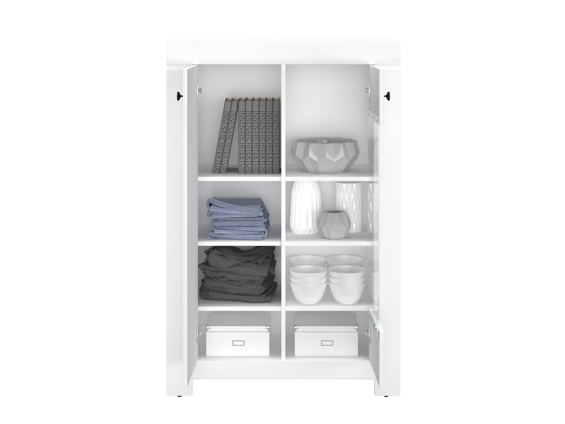 Vitrinos durys pagamintos iš stiklo ir aukštos kokybės baldų plokštės. Priklausomai nuo interjero dizaino, joje galima laikyti knygas, suvenyrus, stalo įrankius ir daug daugiau.