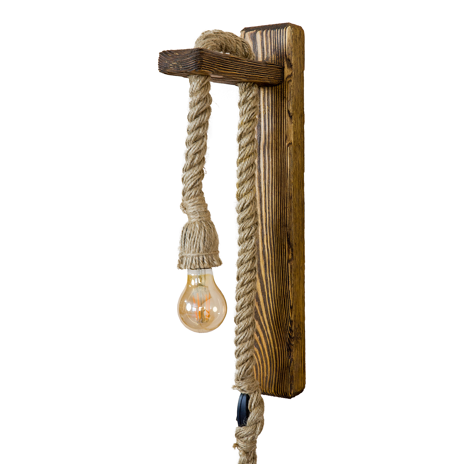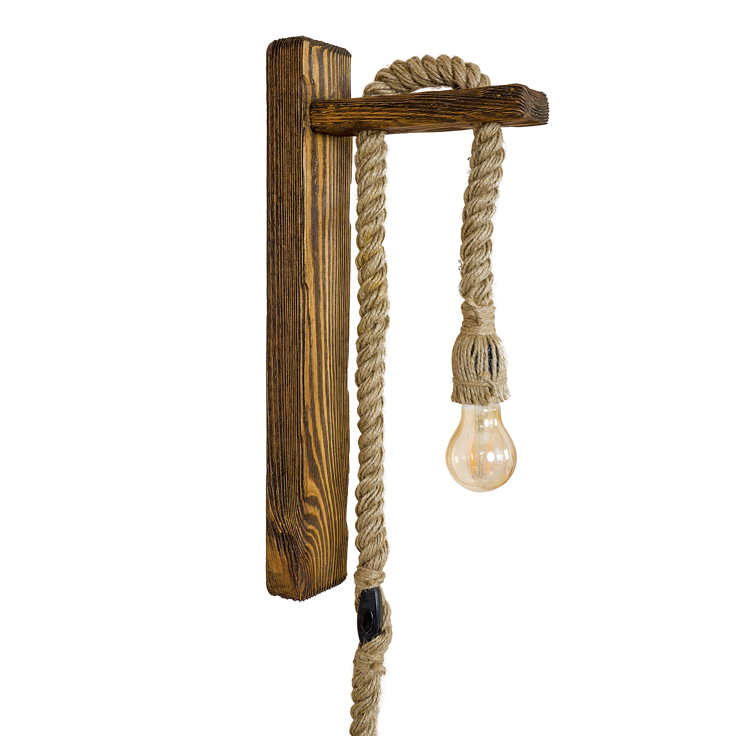 Medžiaga: struktūrizuota pušies mediena + džiuto virvė