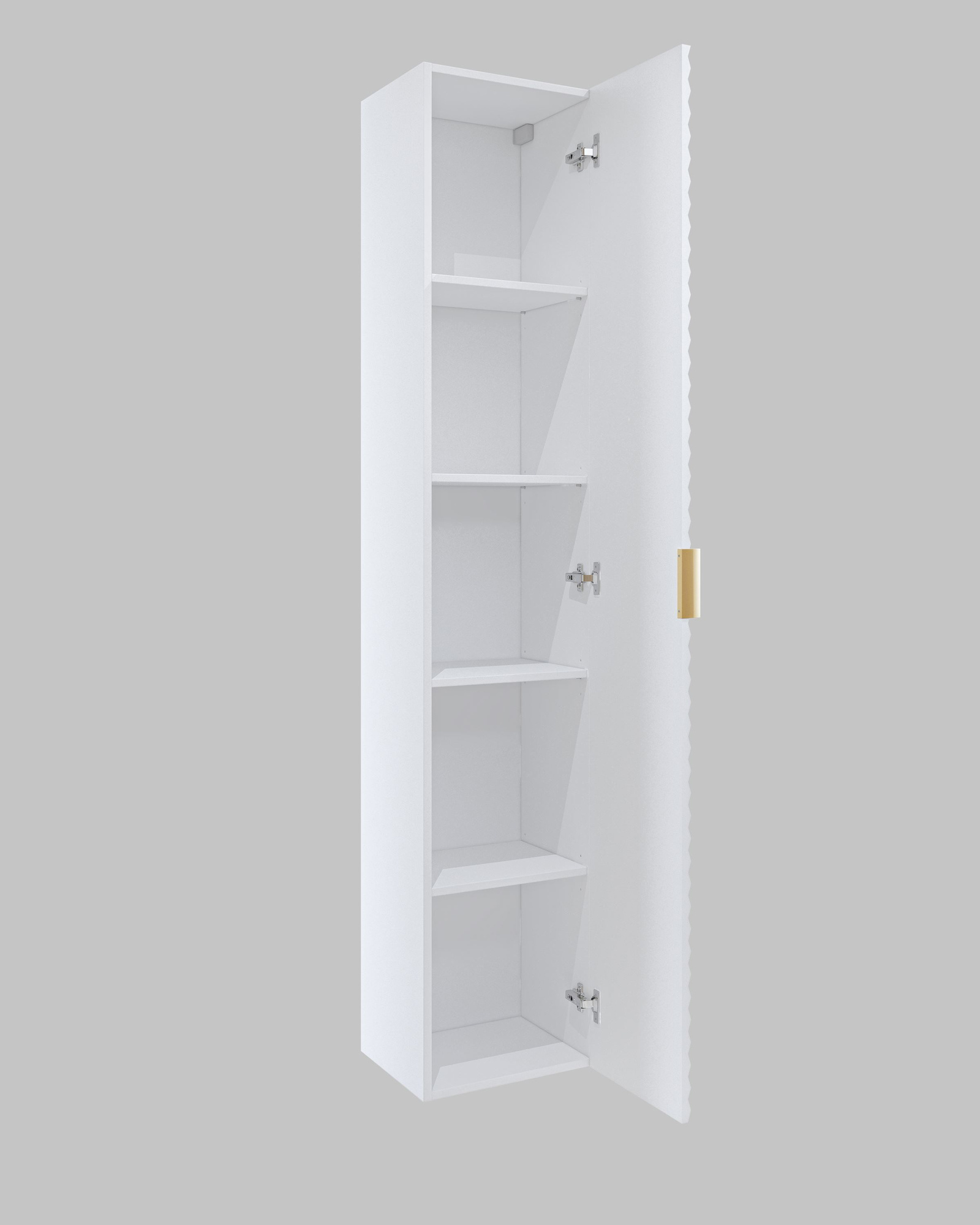 Aukšta pakabinama kolona „Laura“ – tai elegantiškas baldas, kuris jūsų interjerui suteiks nepaprasto stiliaus ir harmonijos. Minimalistinis matinės baltos spalvos dizainas dera su įvairiais išdėstymais, o subtilios auksinės rankenėlės suteikia prabangos. Ši kolona – puikus sprendimas tiems, kurie vertina paprastumą ir eleganciją savo aplinkoje. Ši aukšta pakabinama spinta, kurios plotis 35 cm, aukštis 186 cm ir gylis 35 cm, buvo sukurta siekiant maksimaliai išnaudoti erdvę. Ji puikiai tinka ne tik svetainei ar miegamajam, bet ir vonios kambariui, kur suteikia stiliaus ir išskirtinio praktiškumo. Galimybė montuoti dureles kairėje arba dešinėje pusėje, kolona sklandžiai įsilies į bet kokį kambario išplanavimą. Viduje erdvios lentynos suteikia daug vietos visiems jūsų reikalingiausiems daiktams susidėti. Laminuotos plokštės konstrukcija garantuoja ne tik estetiškai patrauklią išvaizdą, bet ir lengvą valymą – didelį privalumą kasdien naudojant. Be to, modernūs vyriai su švelnaus uždarymo funkcija leidžia patogiai naudotis baldais, pašalinant triukšmą uždarant dureles.