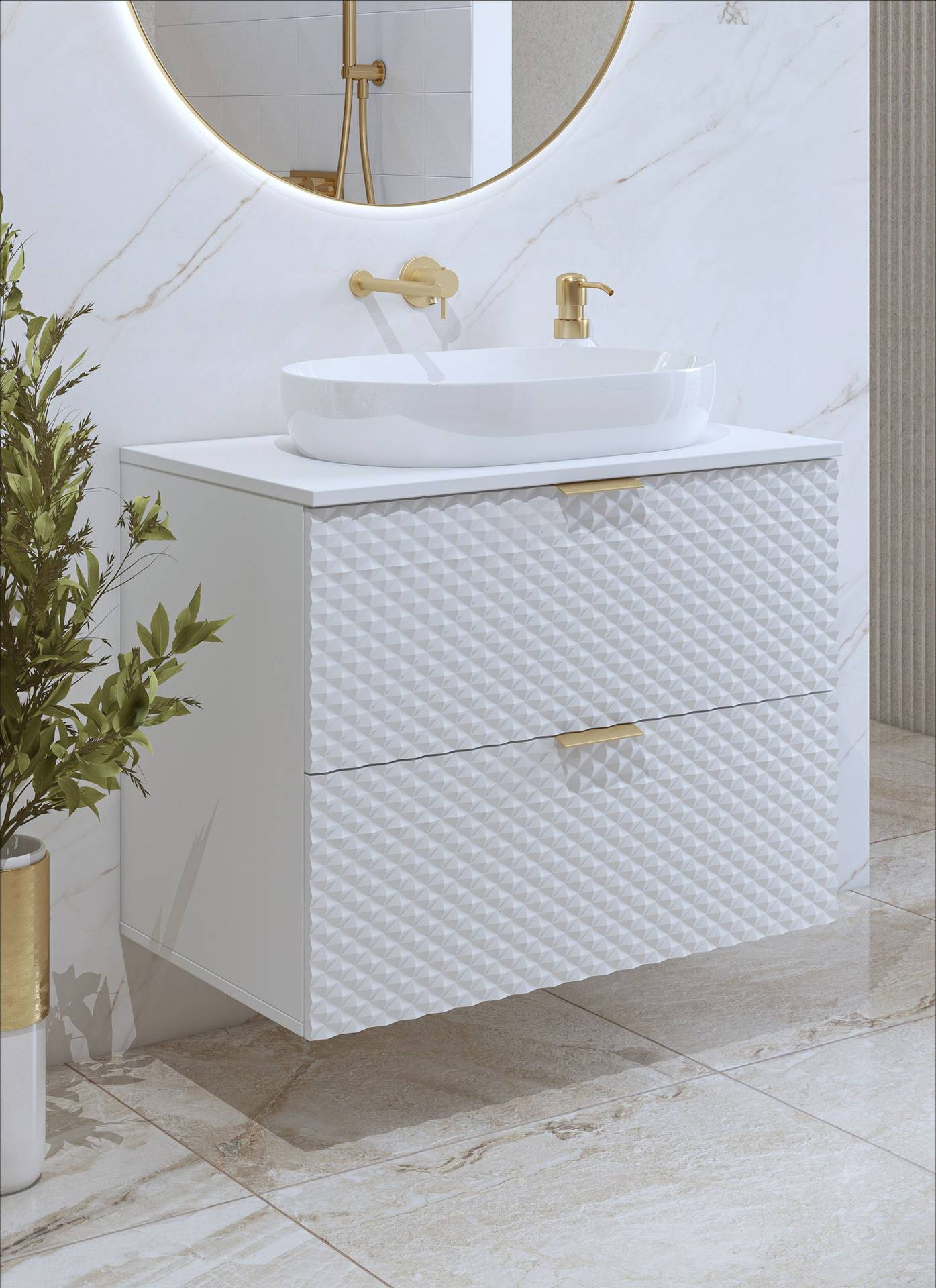 Atraskite eleganciją ir funkcionalumą viename su „Helvetia“ praustuvo spintele „Laura“. Ši stilinga 80 cm matinės baltos spalvos praustuvo spintelė puikiai tiks bet kuriame moderniame vonios kambaryje ir suteiks jam unikalų charakterį. Auksinės rankenėlės yra elegantiškas akcentas, kuris paryškina minimalistinę išvaizdą ir suteikia interjerui prabangos.