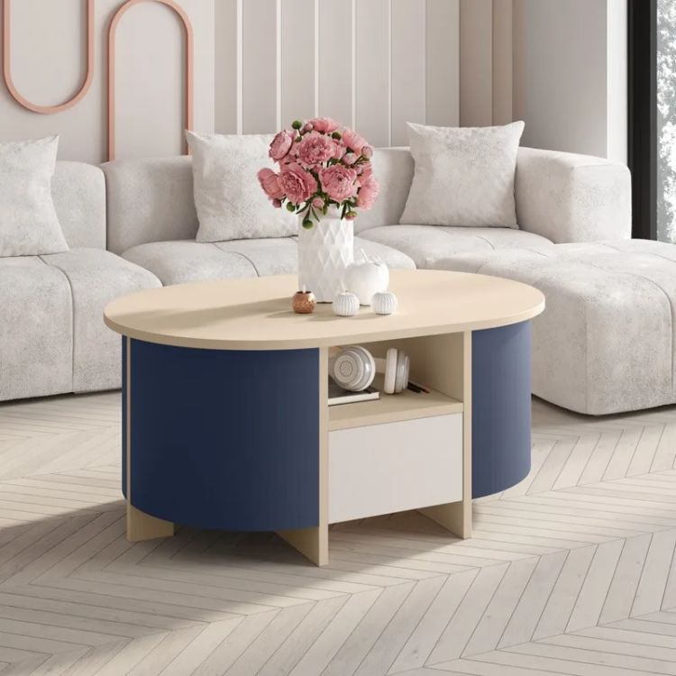 Funkcinis LUMIA kavos staliukas mėlynos spalvos su lentyna ir stalčiumi