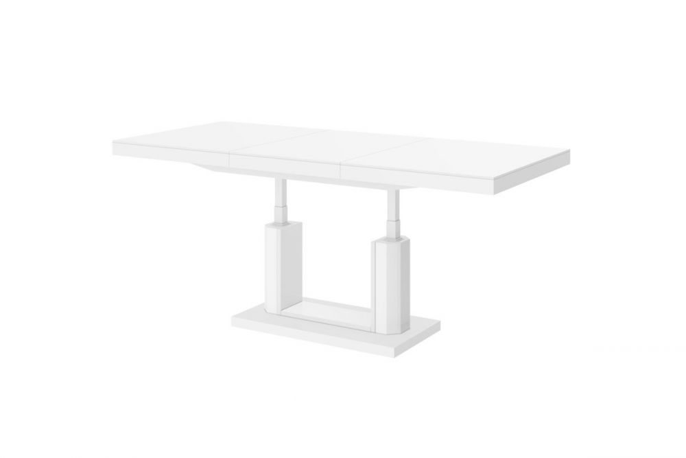 „QUADRO LUX“ valgomojo stalas skirtas tiems, kurie ieško funkcionalaus stalo, kuris taip pat galėtų būti valgomojo stalas svečiams. Šis stalo modelis iš tikrųjų yra stalo ir suolo derinys, leidžiantis stalviršiui išskleisti ir sklandžiai reguliuoti aukštį. Šis svetainės stalas turi sinchroninius rutulinius guolius, kurie leidžia greitai ir lengvai išskleisti stalviršį. Tiesiog švelniai patraukite vieną stalviršio dalį, ir kita išskleistis tuo pačiu metu. Po stalviršiu yra prailginimas, kuris stalviršį prailgina iki 170 cm ilgio. „QUADRO LUX“ stalo aukštį galima padidinti nuo 54 cm iki 74 cm, taip sukuriant stalą, prie kurio galite pastatyti kėdes ir patogiai mėgautis maistu su šeima ar svečiais. Šis Lenkijoje pagamintas stalas pagamintas iš aukštos kokybės MDF plokštės, padengtos akriliniu kilimėliu, suteikiančiu jam blizgią, veidrodinę apdailą. Akrilo sluoksnis pasižymi padidintu atsparumu įbrėžimams ir UV spinduliams, skirtingai nei lakuotos lentos.