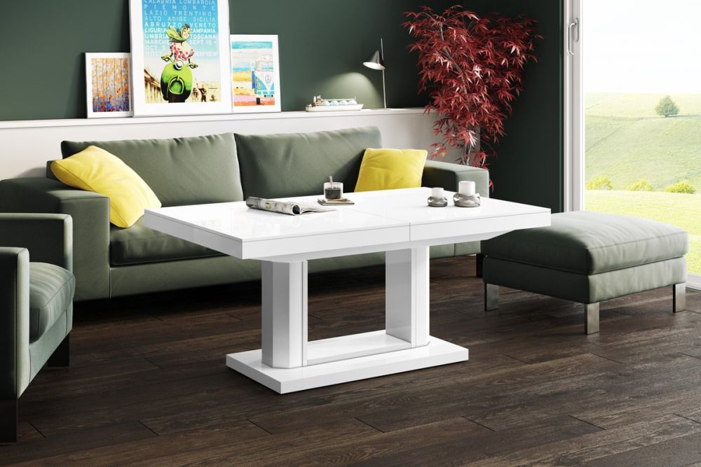 QUADRO LUX kavos staliukas 120(170)x75 baltas blizgus ištraukiamas