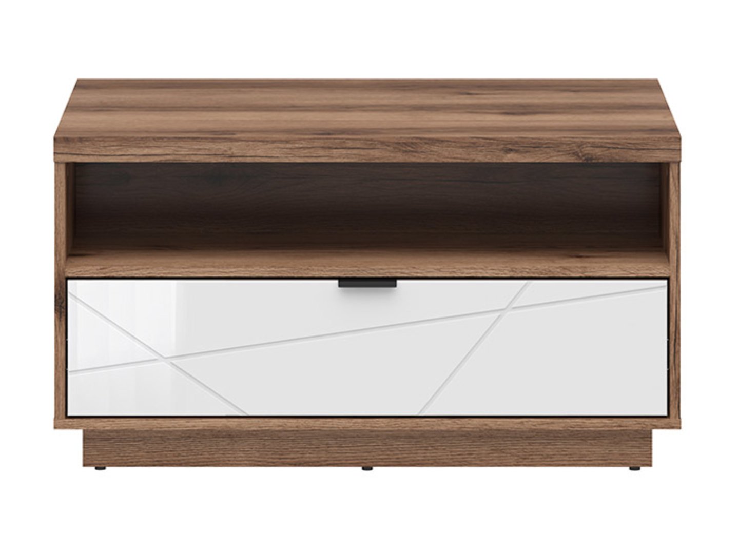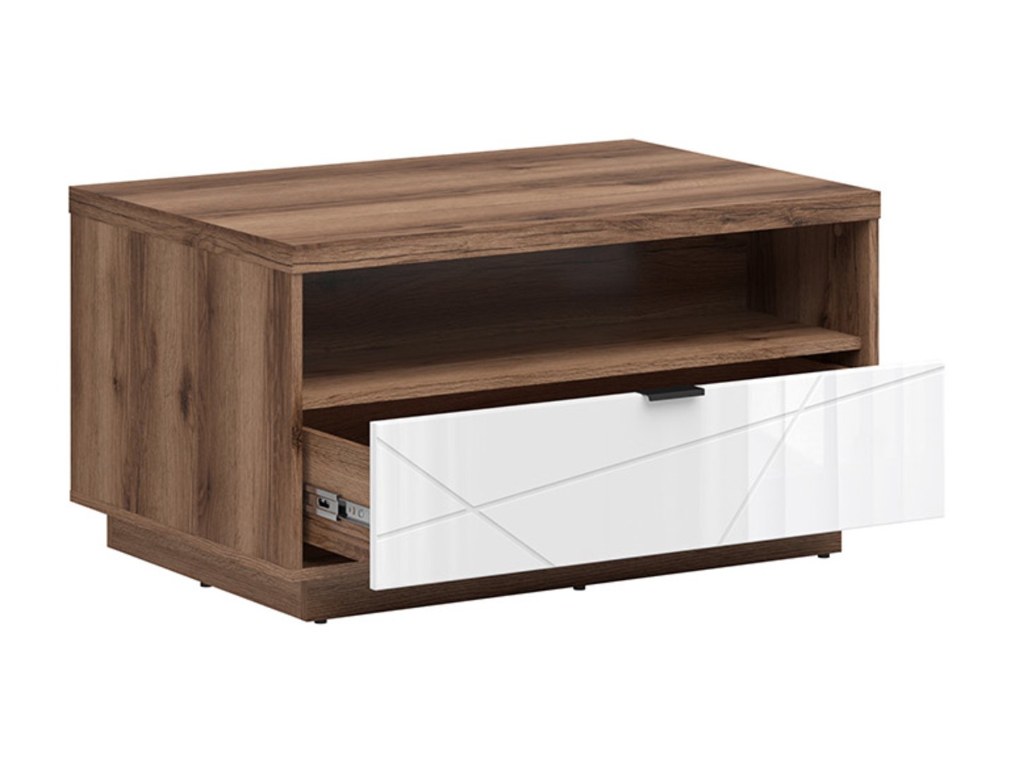Būkite pirmas aprašęs “FORN kavos staliukas su stalčiumi 60 cm, Delano ąžuolas tamsus/blizgi balta”