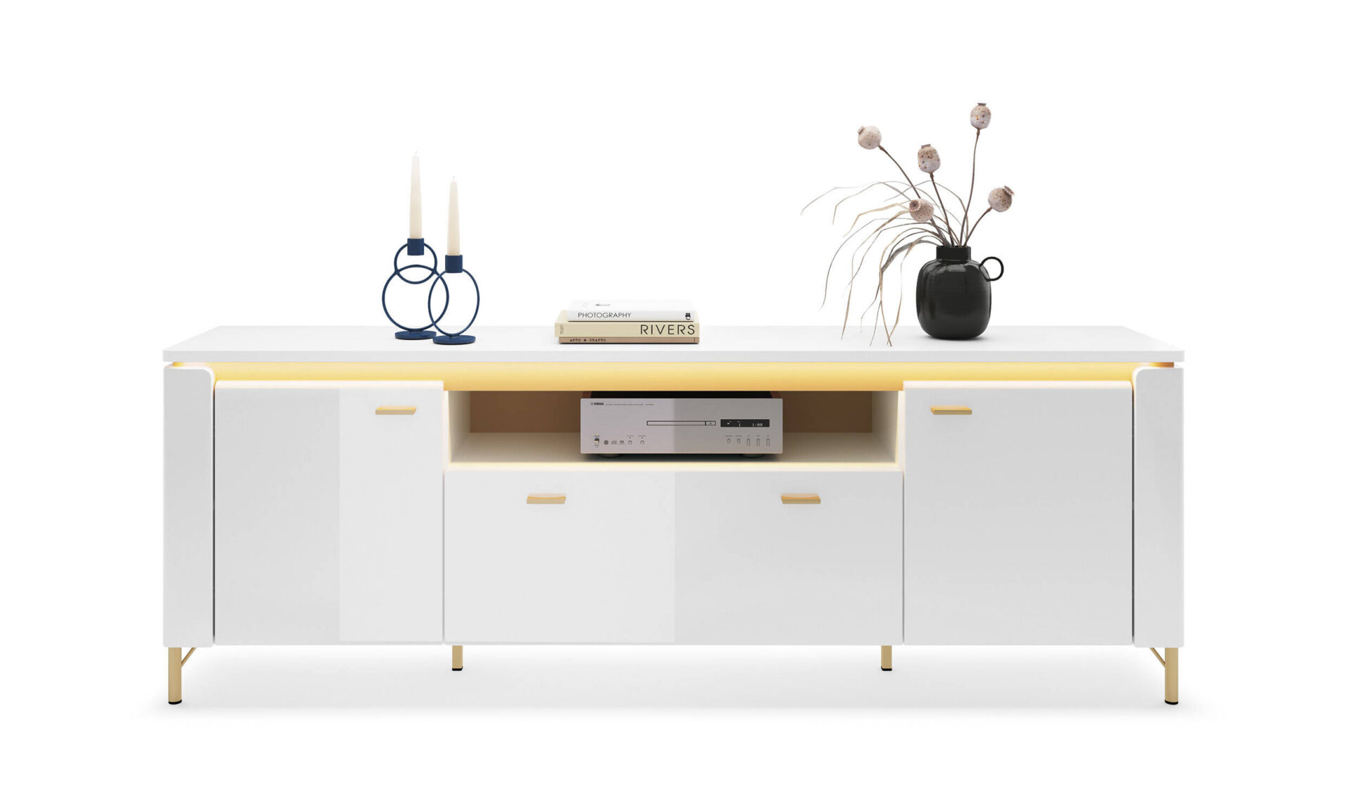 Lazio LAZF03 – 2D1S TV spintelė su LED apšvietimu, Alpių balta/blizgi balta/auksinė