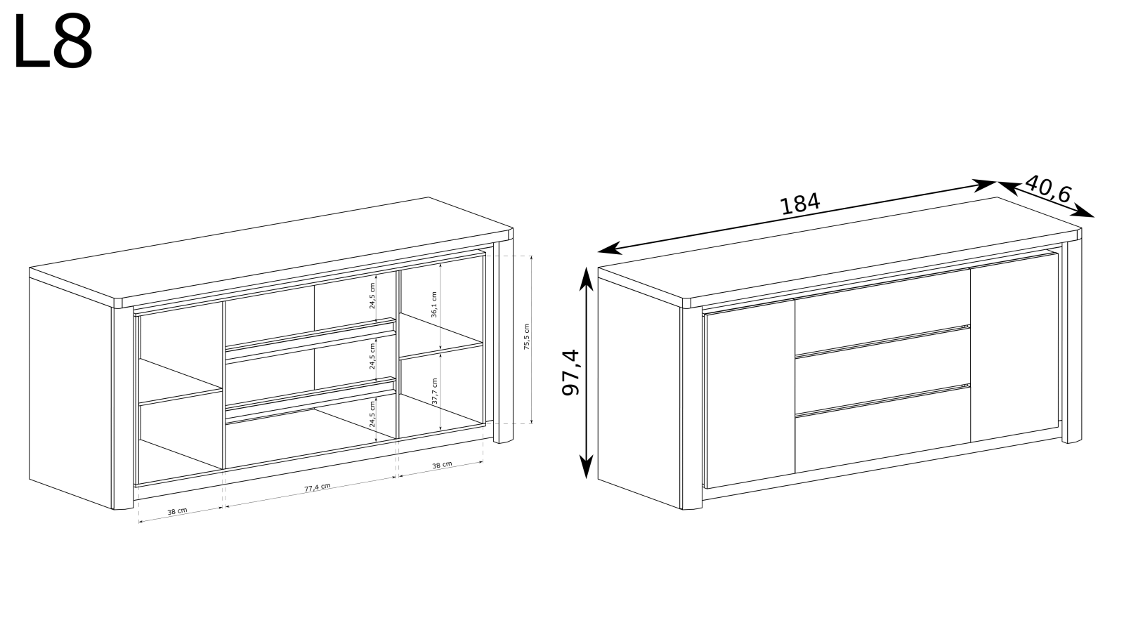 Suteikite savo interjerui elegancijos ir modernumo su „Ribbeck“ kolekcijos komoda „LIVINIO-8“. Ši unikali 184 cm pločio komoda yra ne tik baldas, bet ir tikras bet kurio kambario centrinis elementas. Sukurta tiems, kurie vertina stiliaus ir funkcionalumo derinį, jos blizgios baltos fasadinės dalys harmoningai kontrastuoja su „Ribbeck“ korpusu, sukurdamos unikalią kompoziciją, kuri pradžiugins kiekvieną svečią. „LIVINIO-8“ komoda yra komforto ir praktiškumo sinonimas. Centrinėje dalyje yra trys erdvūs stalčiai, kuriuose lengvai tilps visi jūsų lobiai. Švelnaus uždarymo sistema leidžia naudotis komoda dar maloniau – kiekvienas stalčius užsidaro švelniai ir tyliai. Kitas išskirtinis šio modelio bruožas – dvi erdvios spintos, kurios patenkins net ir reikliausius vartotojus. Stabilumas ir tvirta konstrukcija yra būdingi „LIVINIO-8“ komodos privalumai. Pagaminta iš aukštos kokybės laminuotos plokštės, ji yra ne tik estetiškai patraukli, bet ir atspari pažeidimams bei lengvai valoma. Aukšti gamybos standartai garantuoja šio baldo ilgaamžiškumą, kuris džiugins akį ilgus metus. Be to, metaliniai bėgeliai užtikrina sklandų ir patogų kiekvieno stalčiaus naudojimą.
