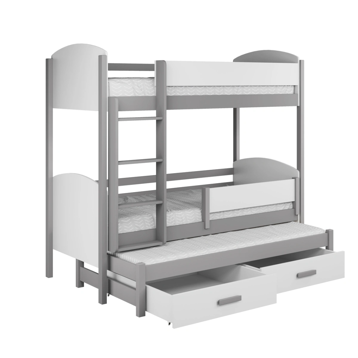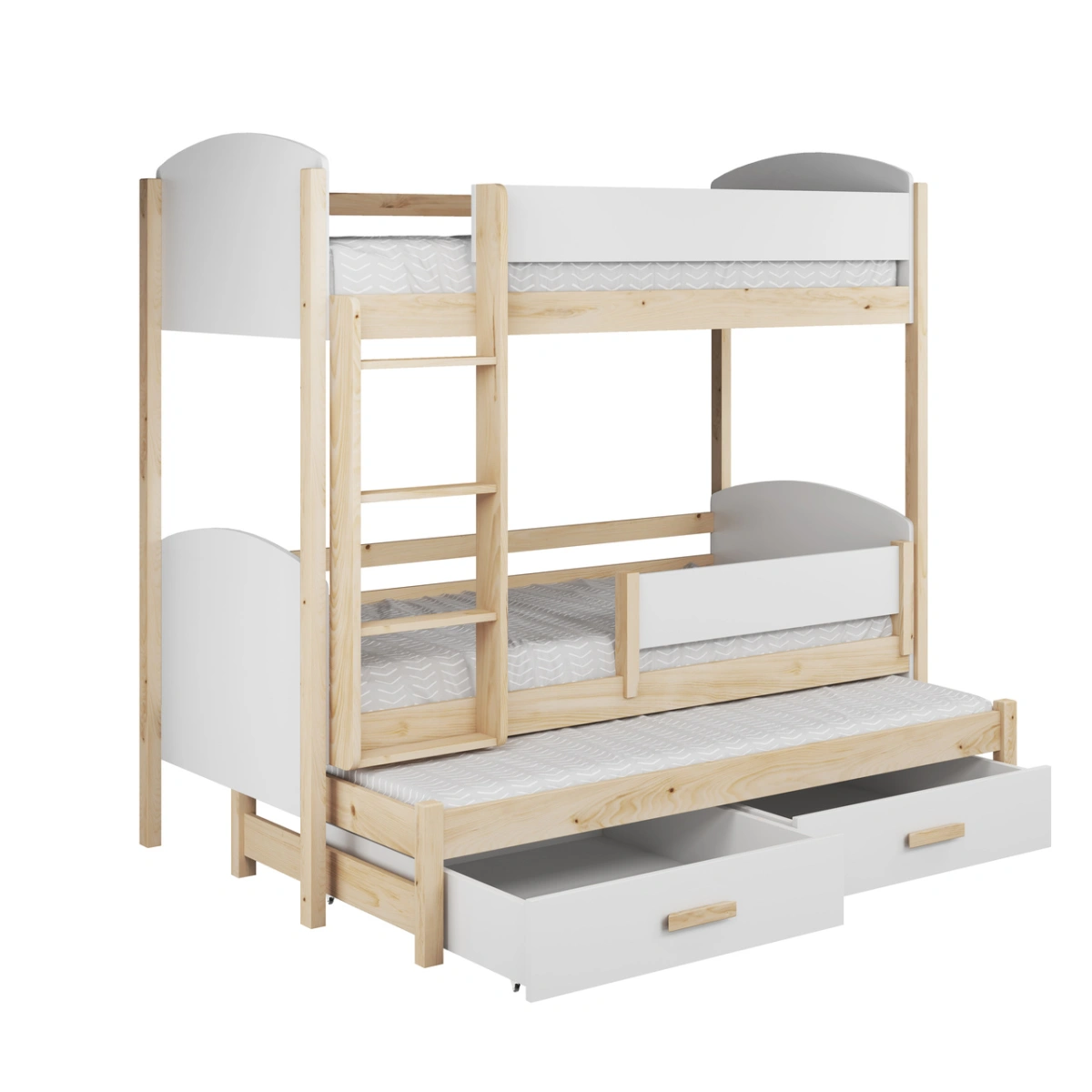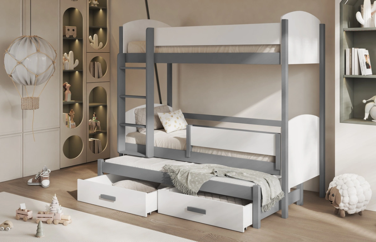 LOGAN trivietė dviaukštė lova su stalčiais 90×200 cm
