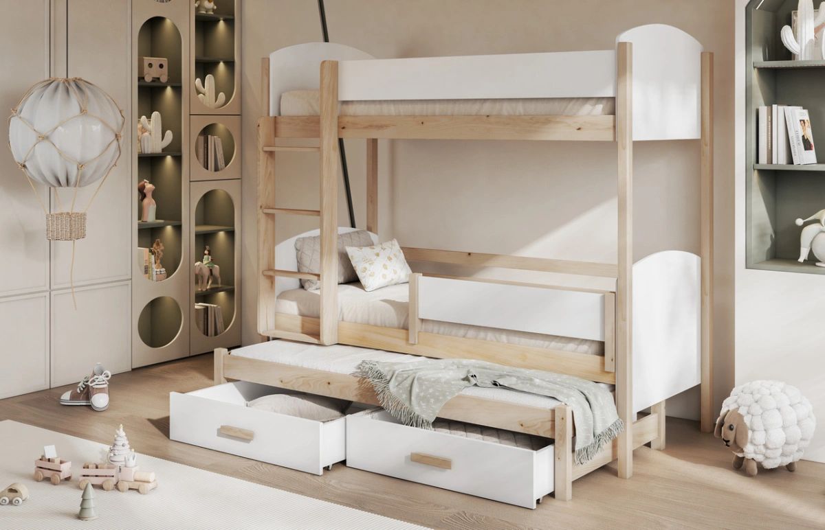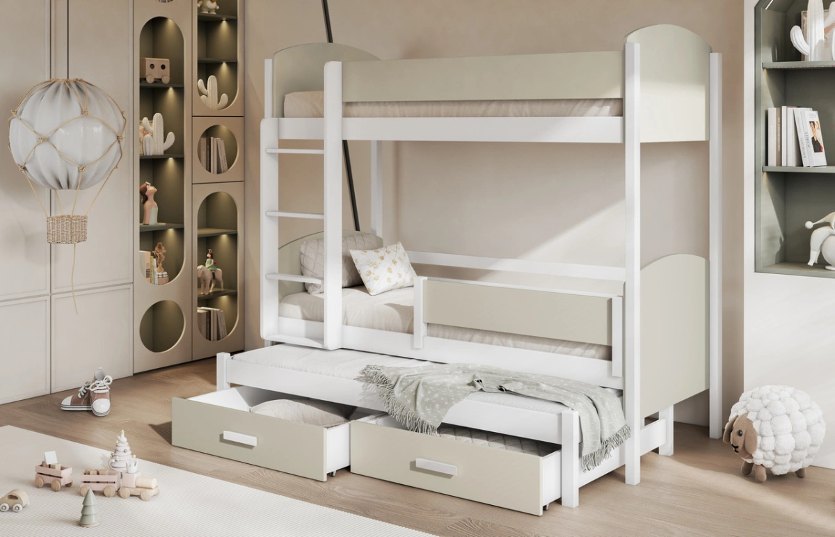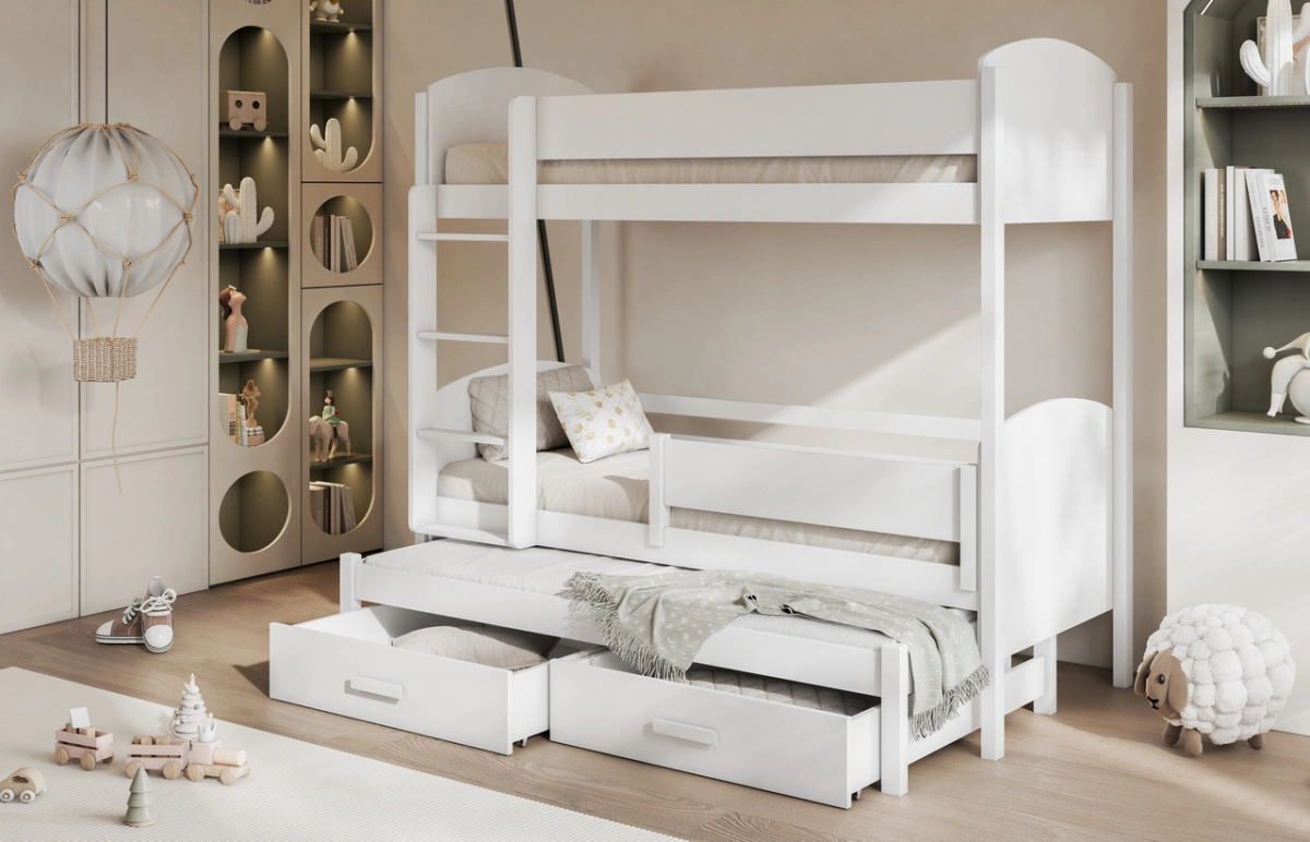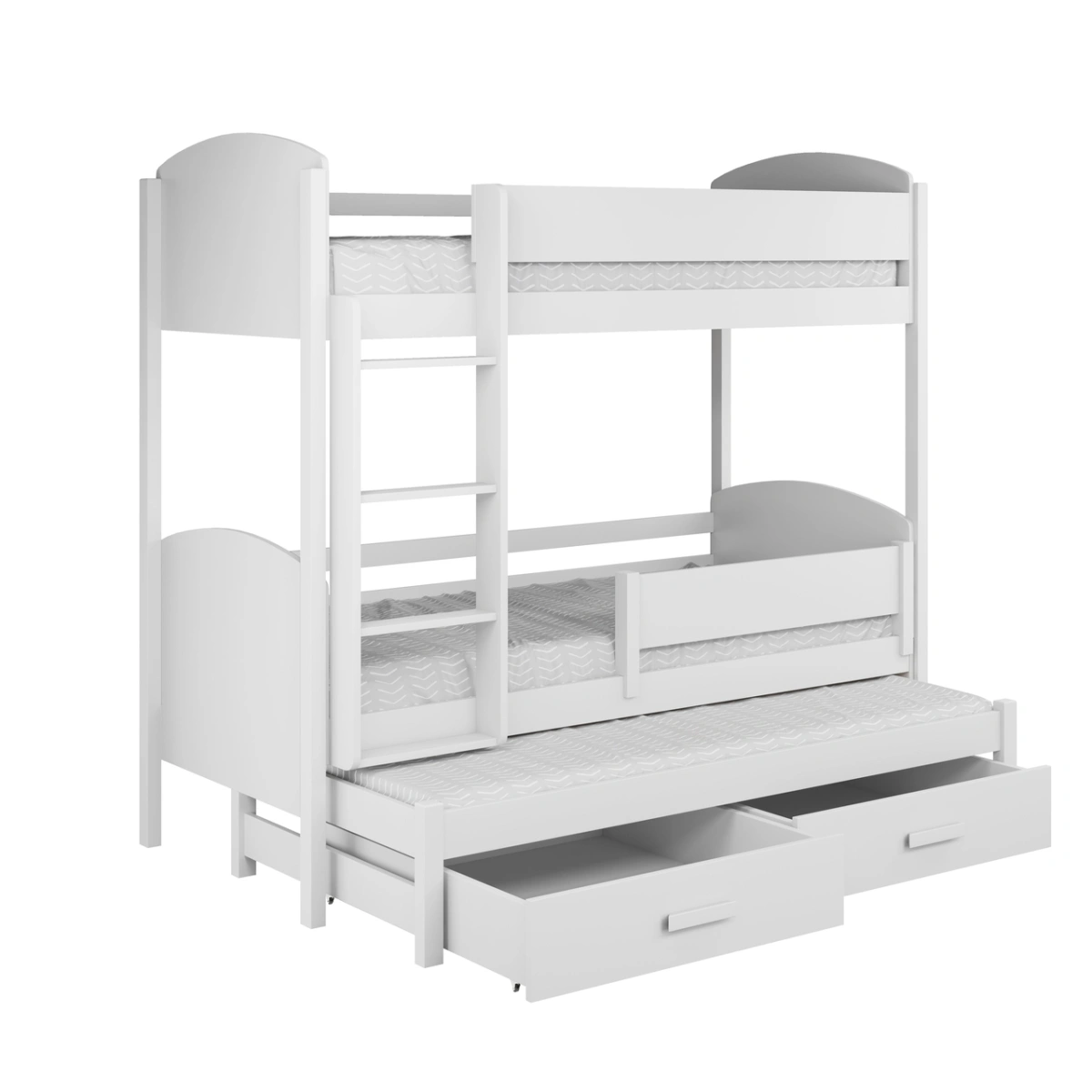 LOGAN trivietė dviaukštė lova su stalčiais 90×200 cm