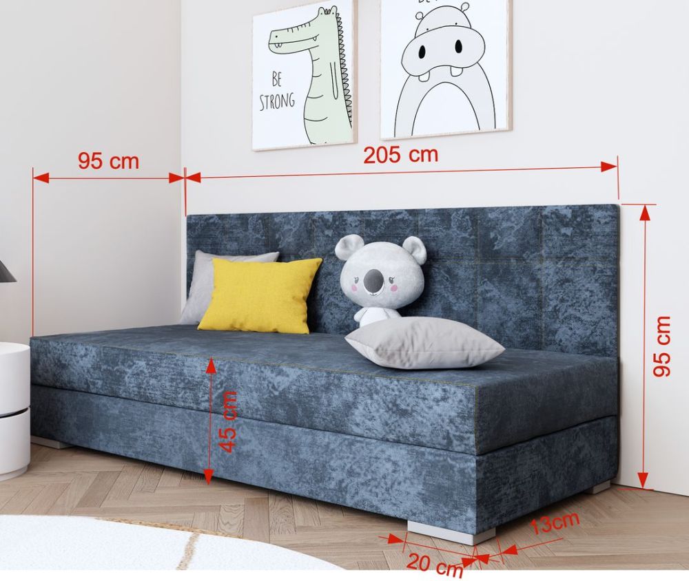 Išoriniai lovos matmenys (ilgis/plotis/aukštis) – 205x95x95 cm