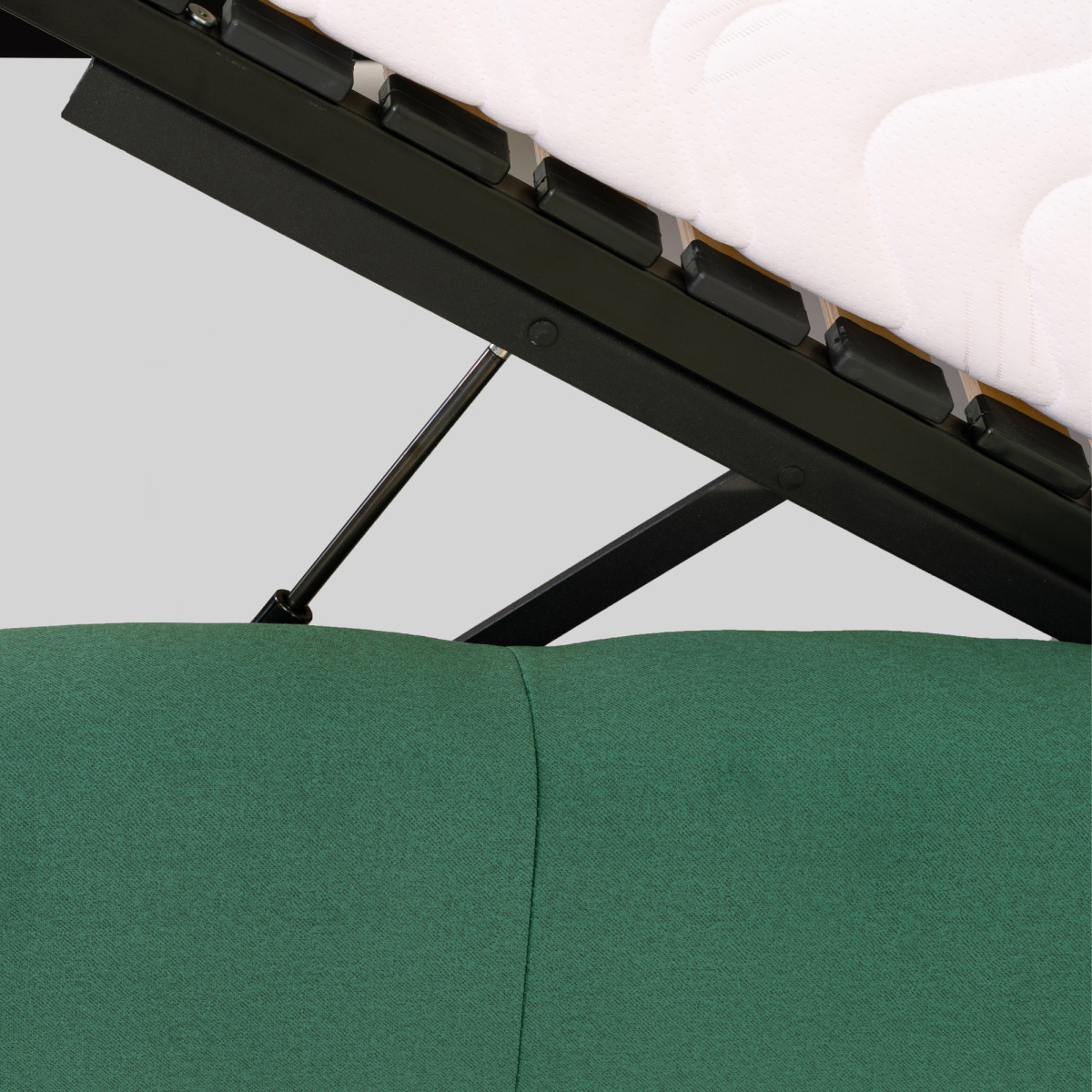 Plotis 187 cm Gylis 235 cm Aukštis 112 cm Miegamoji erdvė 160 × 200 cm Spalva Žalia Audinio pavadinimo elementas 20 Produkto pakuočių skaičius 7 Stilius Modernus Įranga Surinkimo instrukcijos / surinkimo priedai Surinkimas Savarankiškam surinkimui Kojelė / apdaila / spalva Plastikas / chromas Kojelės aukštis 5 cm Standartinis rėmas Metalinis rėmas Rėmo lentelių skaičius 48 Papildomas čiužinys Patalynė Taip