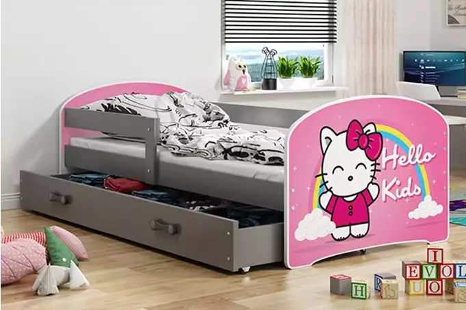 VAIKIŠKA LOVA, PIRMO AUKŠTO TARPIAI, GRAFITO RĖMAS, LIPDUKAS „HELLO KIDS“, GRAFITO STALČIUS, 80 X 160 RINKINYS