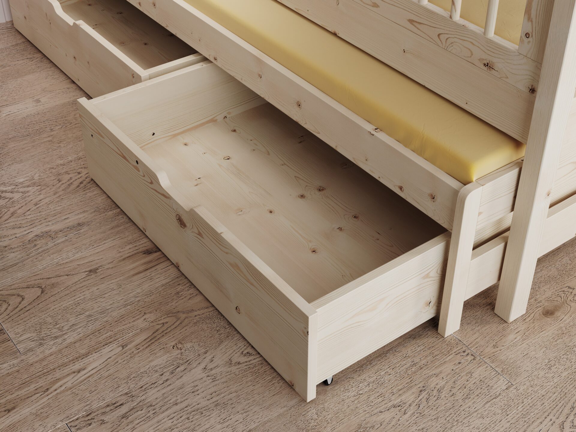 ’Artes Cottage“ lova – stilingas ir funkcionalus sprendimas šeimoms, kurios vertina praktiškumą ir estetiką viename. Ši dvigulė lova, įkvėpta namelio formos, sukuria jaukią ir šiltą atmosferą. Dėl unikalaus dizaino ji puikiai tinka tiek vaikų, tiek paauglių kambariams, sukurdama erdvę poilsiui ir žaidimams. Lova turi ištraukiamą čiužinį, todėl ja gali patogiai naudotis du žmonės – idealiai tinka svečiams pernakvoti ar broliams ir seserims, besidalijantiems kambariu. Be to, lovoje yra praktiški stalčiai, kuriuose yra papildomos vietos patalynei, žaislams ar kitiems aksesuarams laikyti, padedant palaikyti tvarką kambaryje. Čiužinys įskaičiuotas.