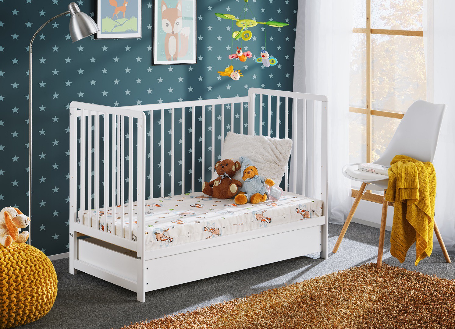 Pagaminta iš pušies medienos (iš FSC sertifikuotų miškų). Po A31:AU32 pagrindu yra stalčius per visą ilgį, ištraukiamas ant ritininių bėgelių. Reguliuojamo aukščio skersiniai. 3 nuimamos skersiniai. Tiesūs galvūgalio rėmai. Atitinka EN 716-1: 2008 + A1: 2013 ir EN 716-2: 2008 + A1: 2013 standartus. Dažymas atitinka EN 71-3: 2013 standartą.